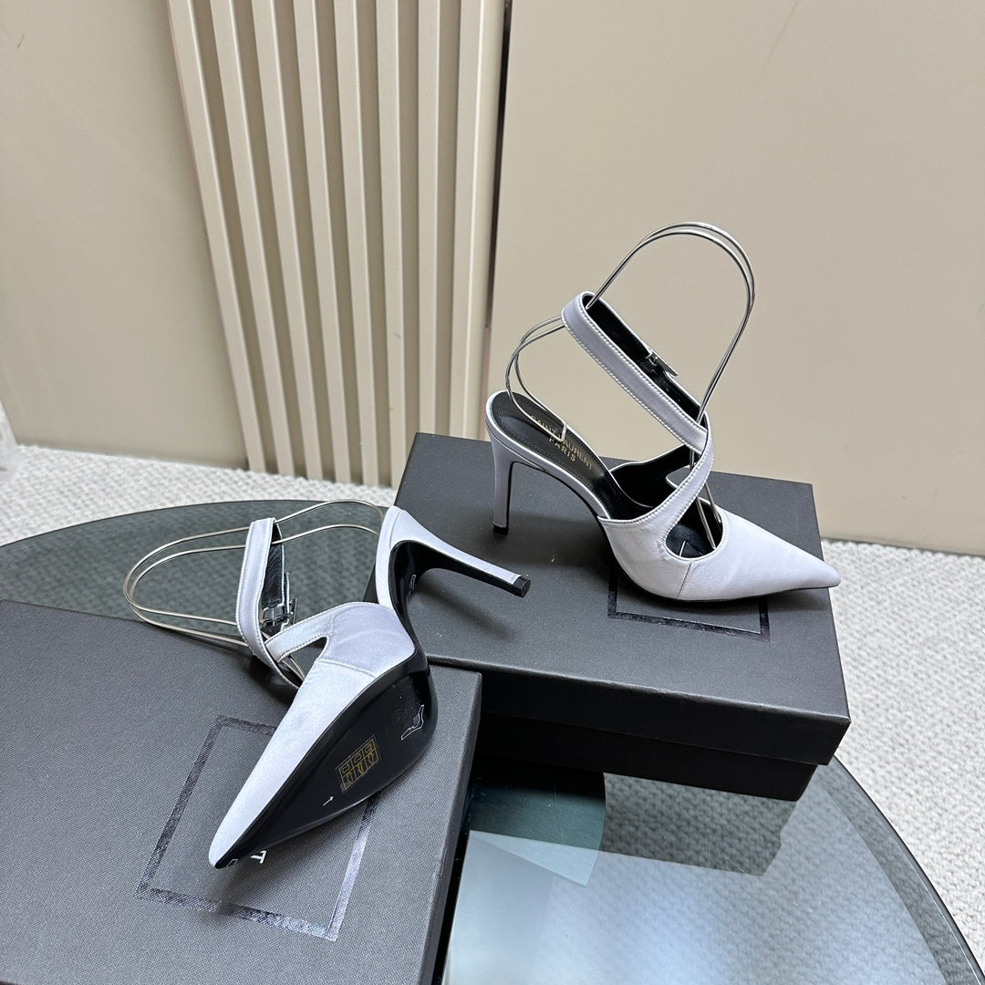 SL CROSS-STRAP SLINGBACK LIGHT BLUE SATIN