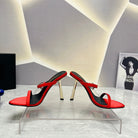SL CRYSTAL BUCKLE HIGH HEELS RED SATIN