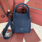 SMALL 21 BALE BAG IN NAVY BLUE GRAINED CALFSKIN WITH SILVER HARDWARE