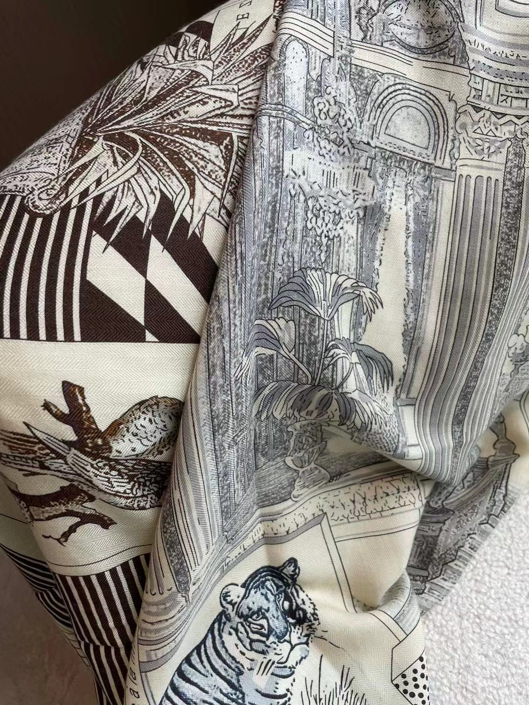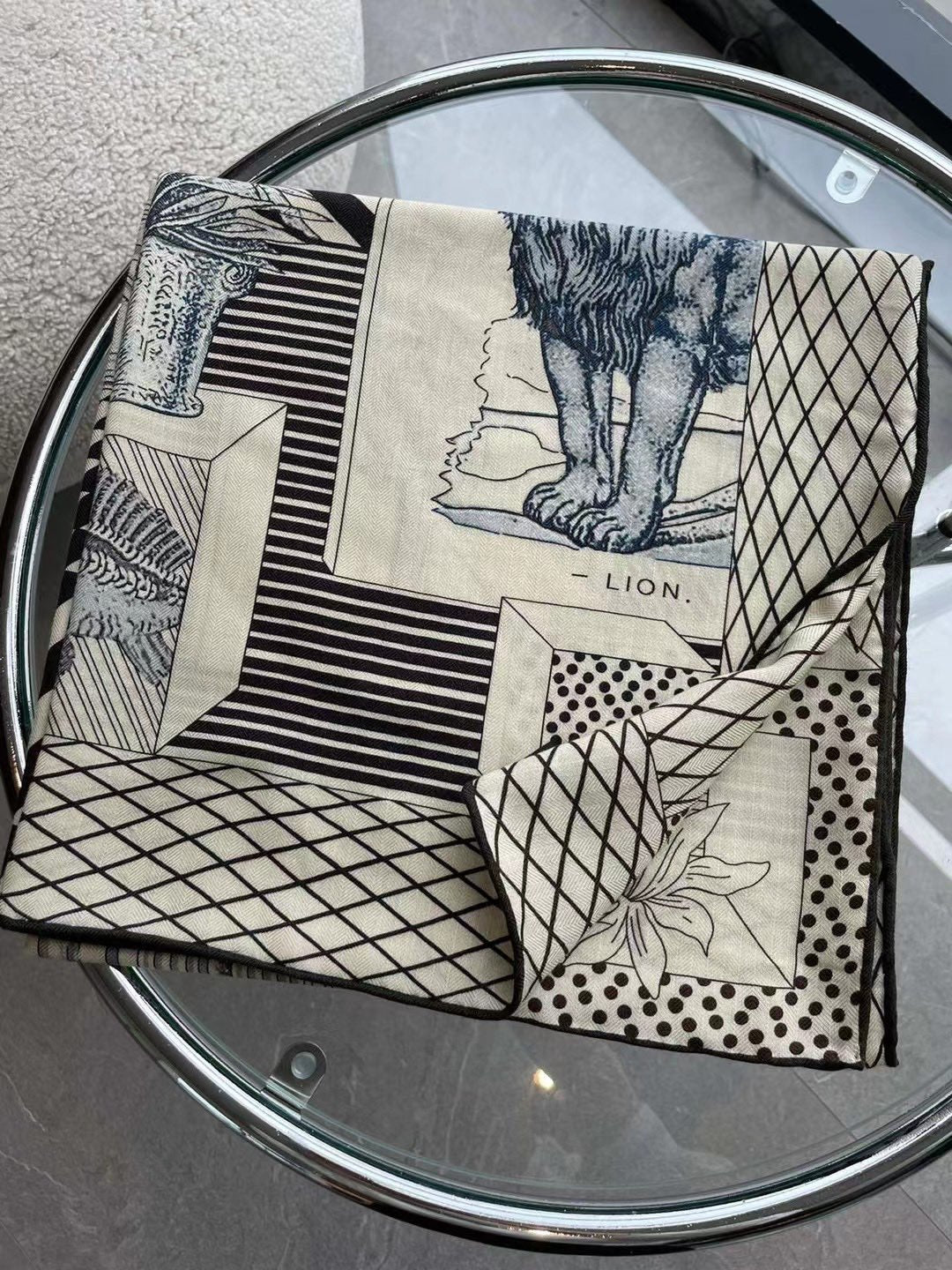 Square Scarf 140 CM In Black Mix White Silk 385353