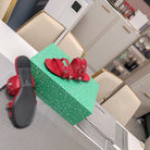 STRAPPY FLAT SANDALS IN RED STUDDED WAX-OIL SHEEPSKIN