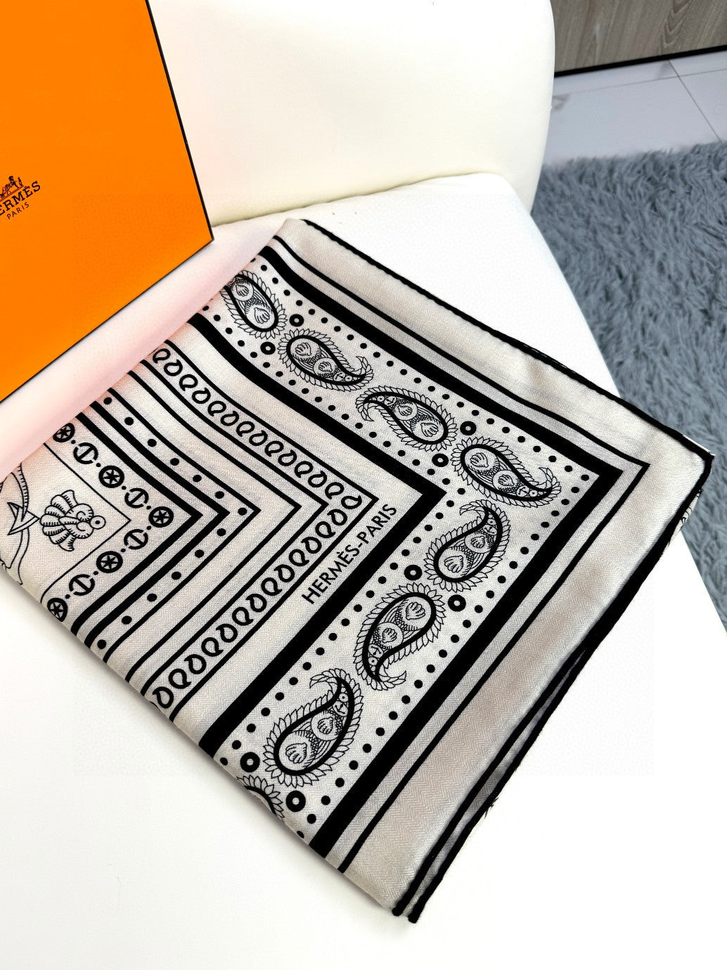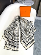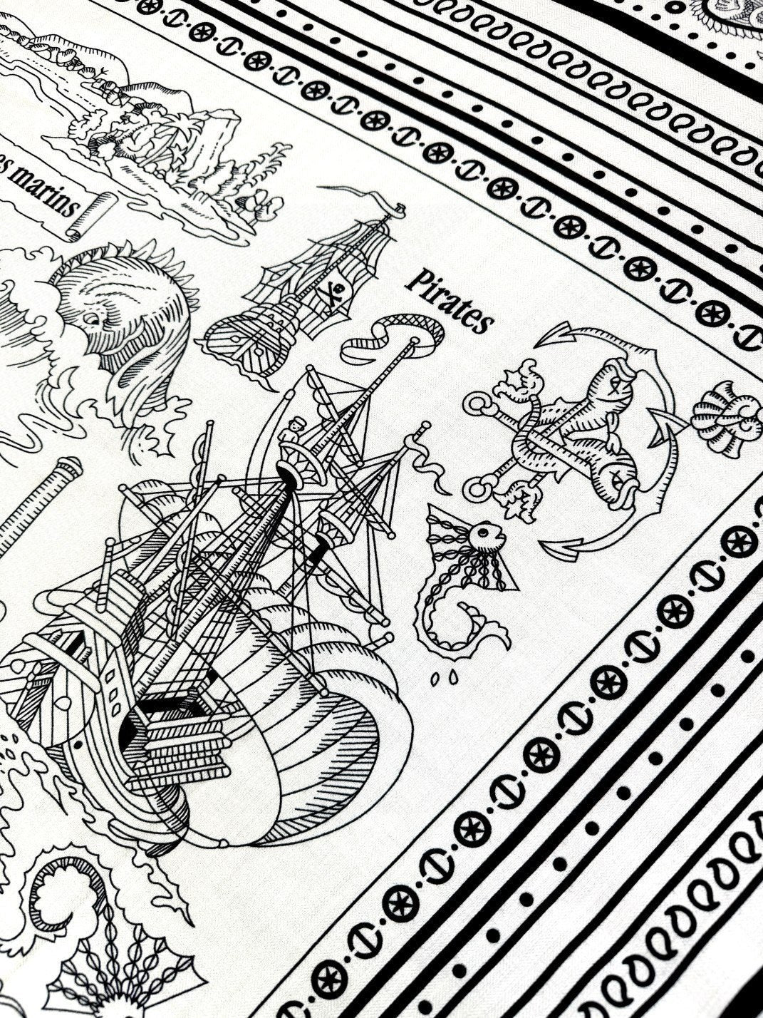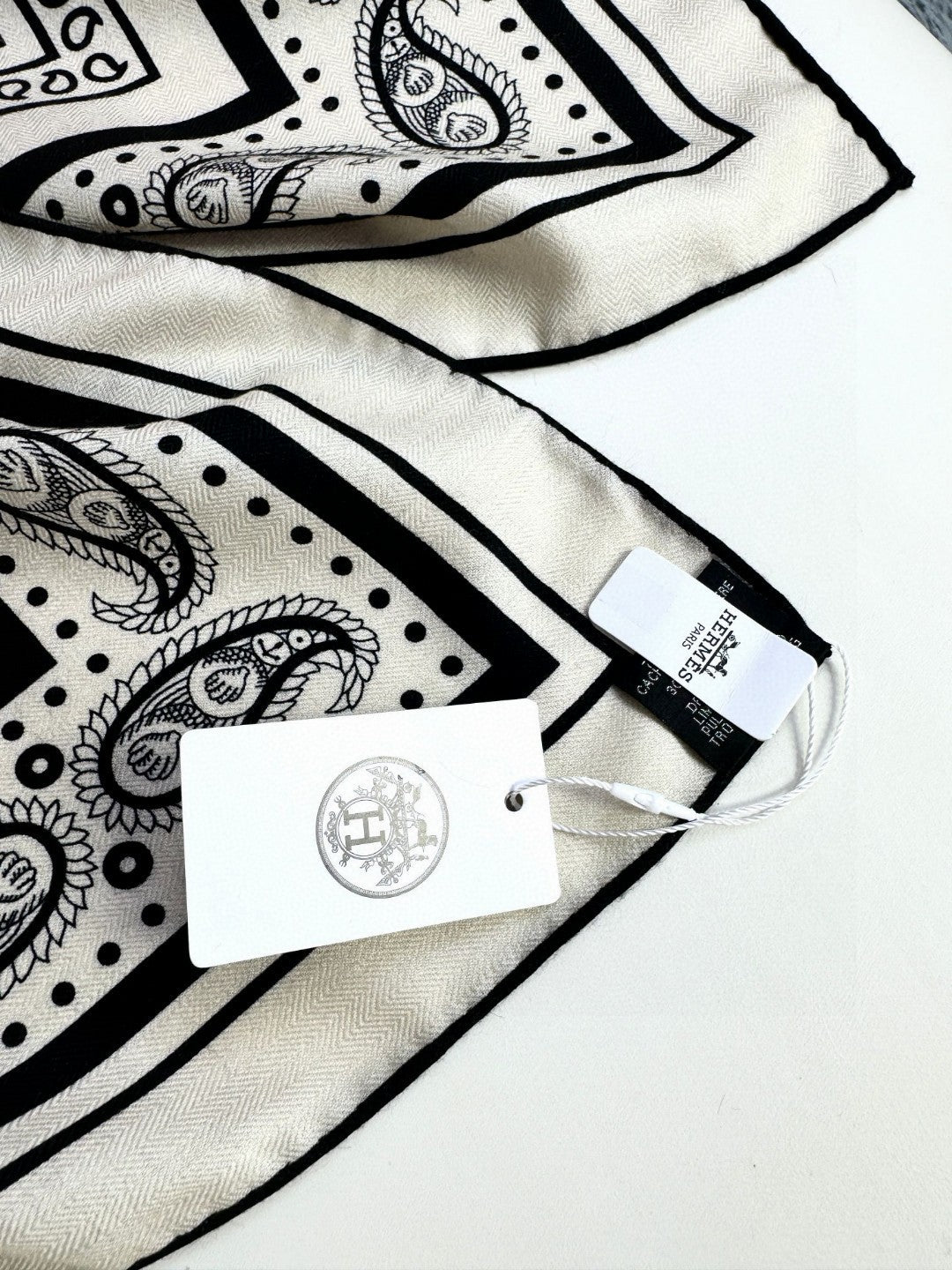 Tatouages Marins Bandana Shawl 135 CM Black White Cashmere And Silk 401091