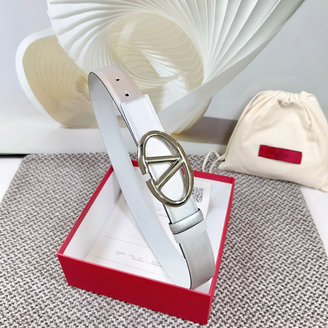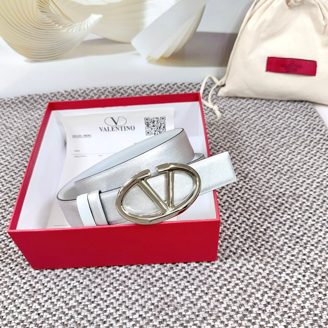 The Bold Edition Reversible Belt 30mm Silver Metalic White Calfskin Silver Buckle