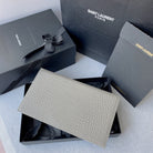 UPTOWN POUCH 27 IN PASTEL GRAY CROCODILE-EMBOSSED SHINY CALFSKIN GOLD LOGO