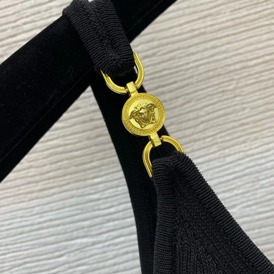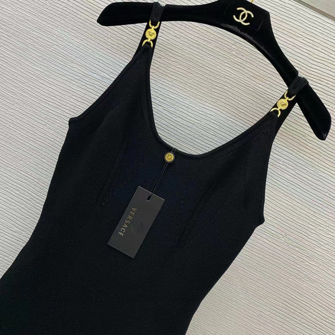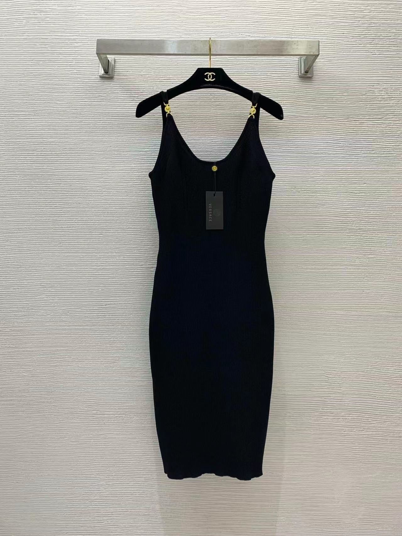 VERSACE RIBBER STRETCH BLACK KNIT DRESSSZ