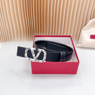 Vlogo Brown Black White Stone Silver Buckle Belt 40mm Black Leather