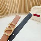 Vlogo Buckle Water Wave Gold Copper Glossy Brown Black Leather 20mm Belt