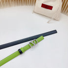 Vlogo Buckle Water Wave Silver Copper Glossy Green Black Leather 20mm Belt