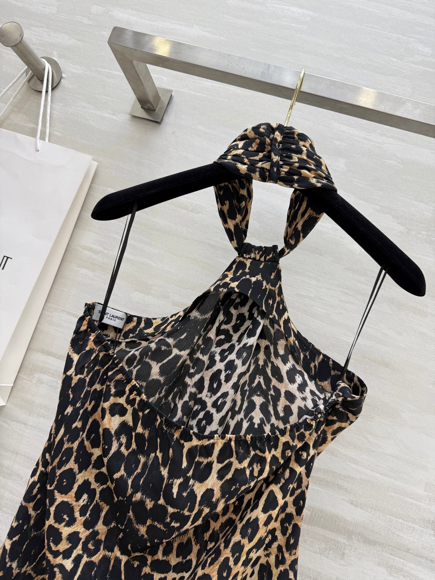 YSL 25 Halter-neck Suspender Vest Leopard Silk