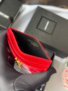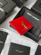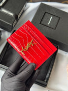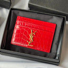 YSL Card Holder 10cm Wallet Red Gold Crocodile Leather 240563