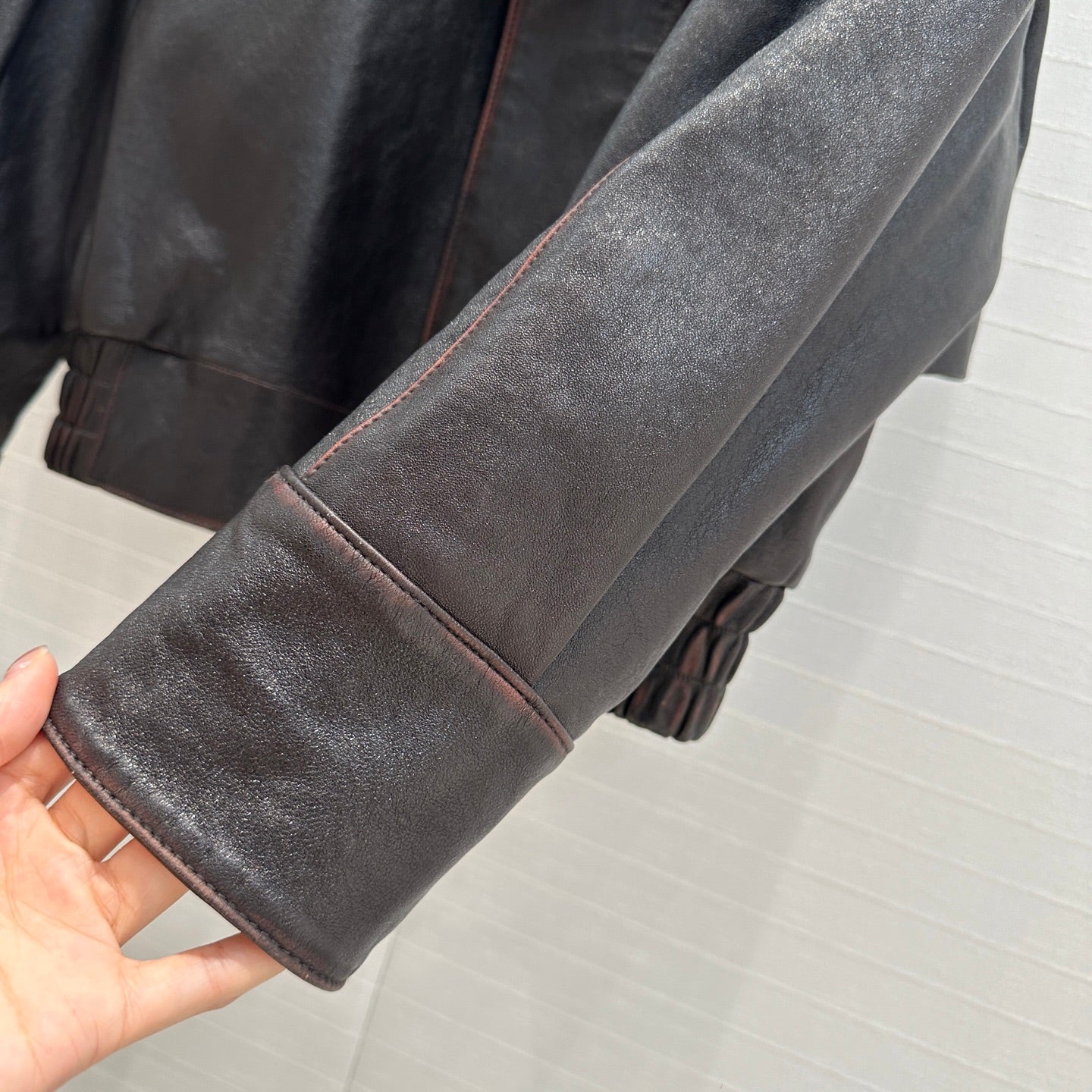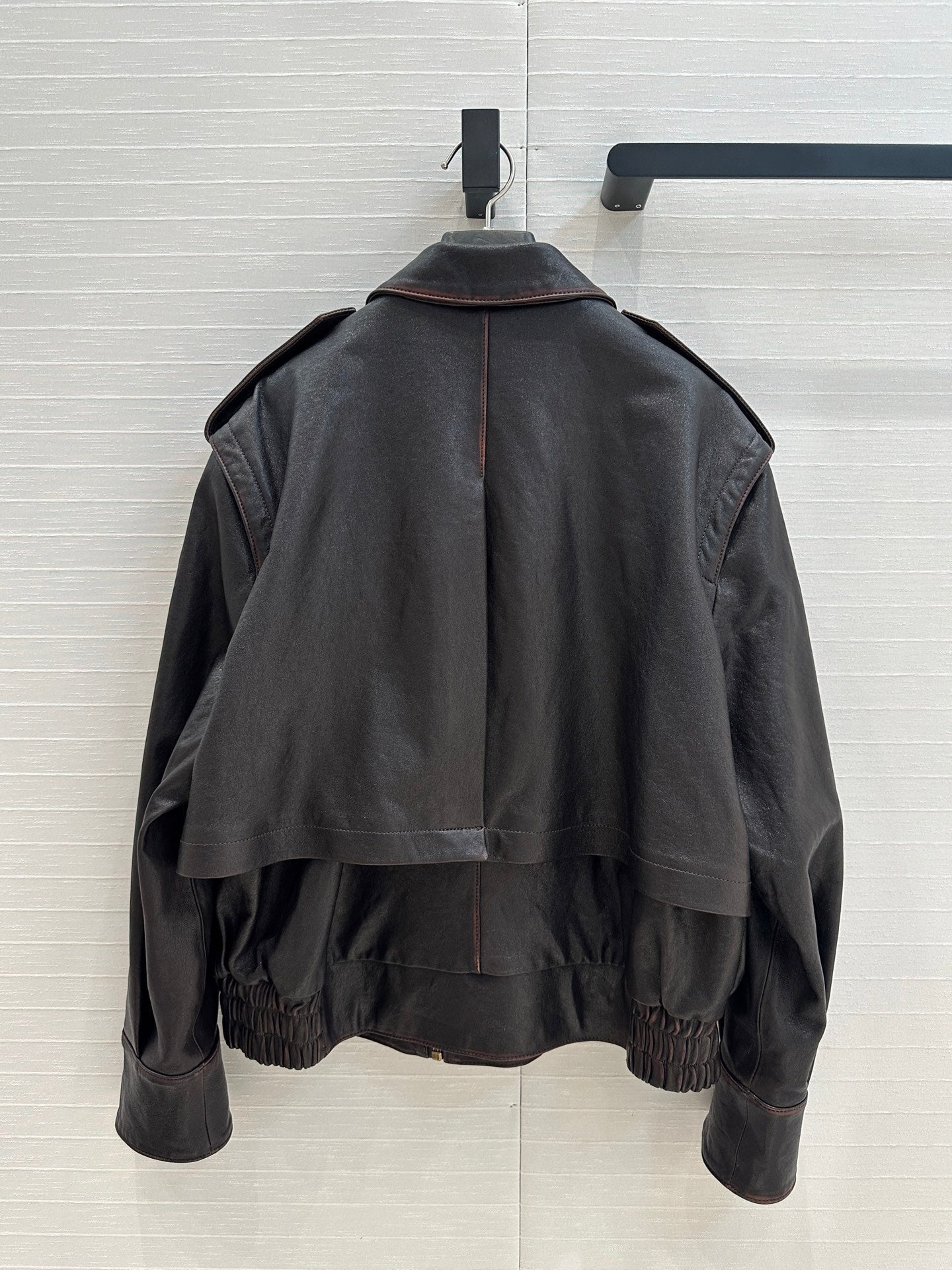 YSL Right-angle Shoulder Silhouette Jacket Black Brown Lambskin