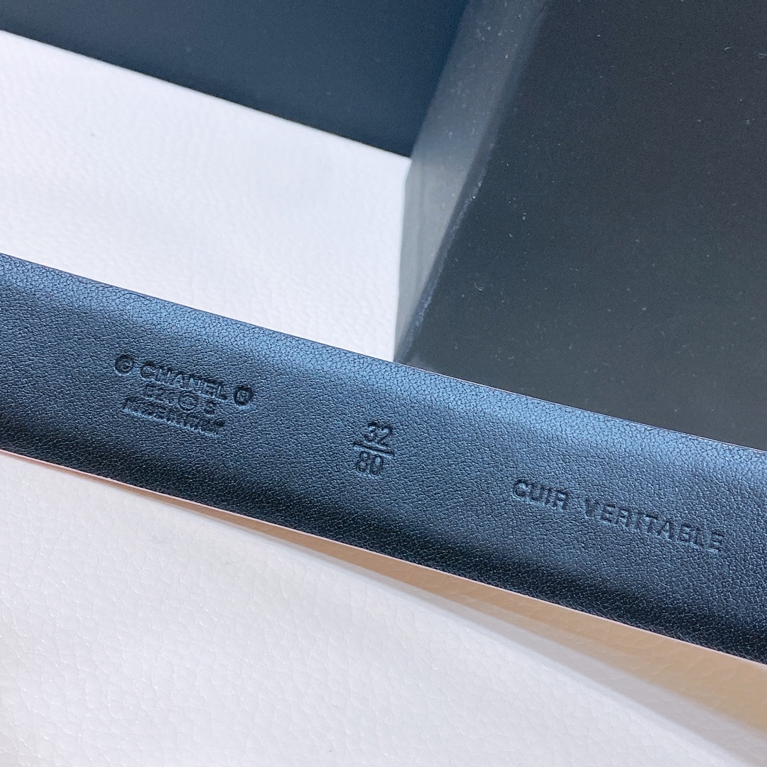 CHANEL BELT 3CM IN STAR COMMAND BLUE AND BLACK LAMBSKIN WITH CRYSTAL GOLD HARDWARE