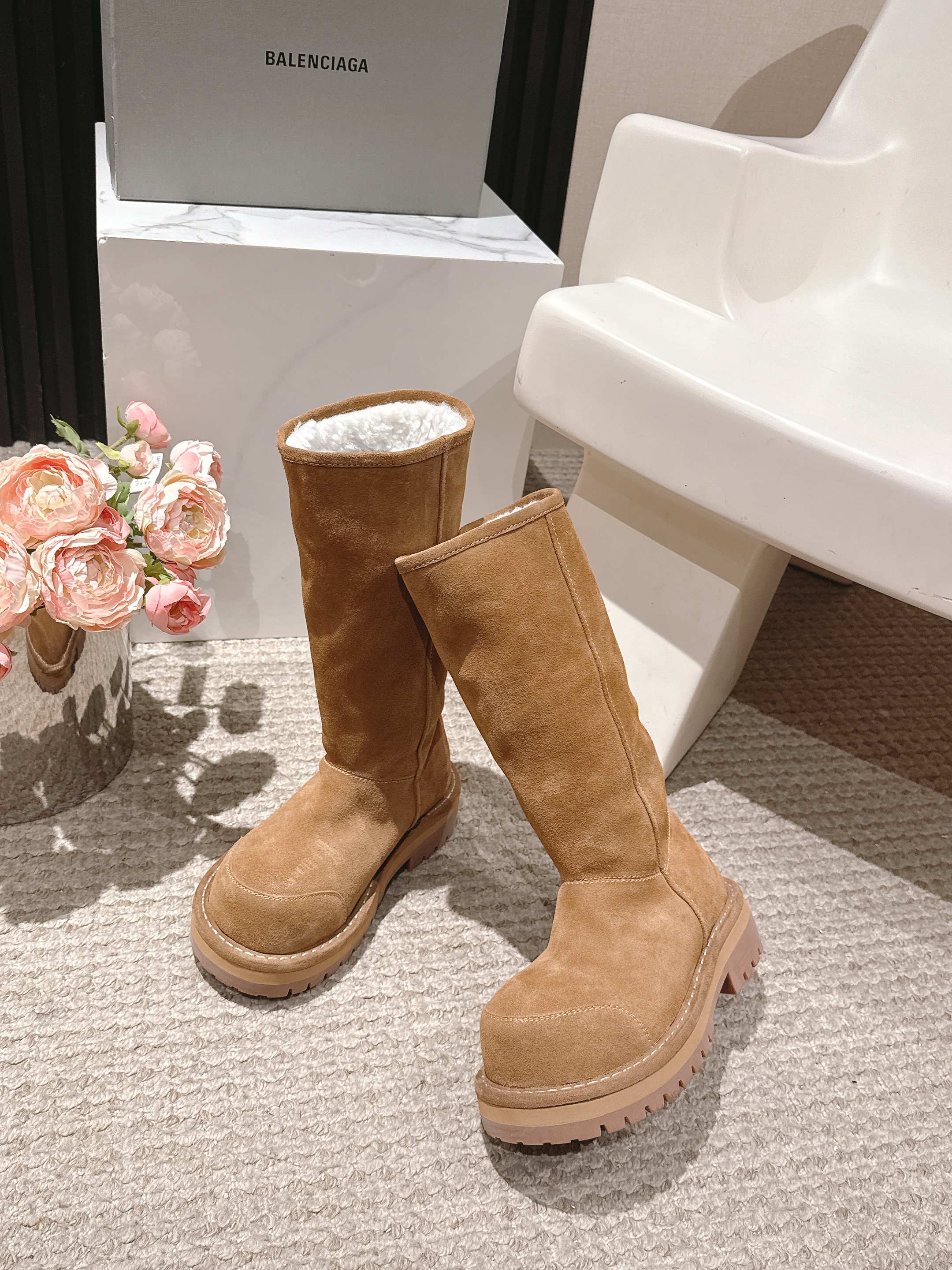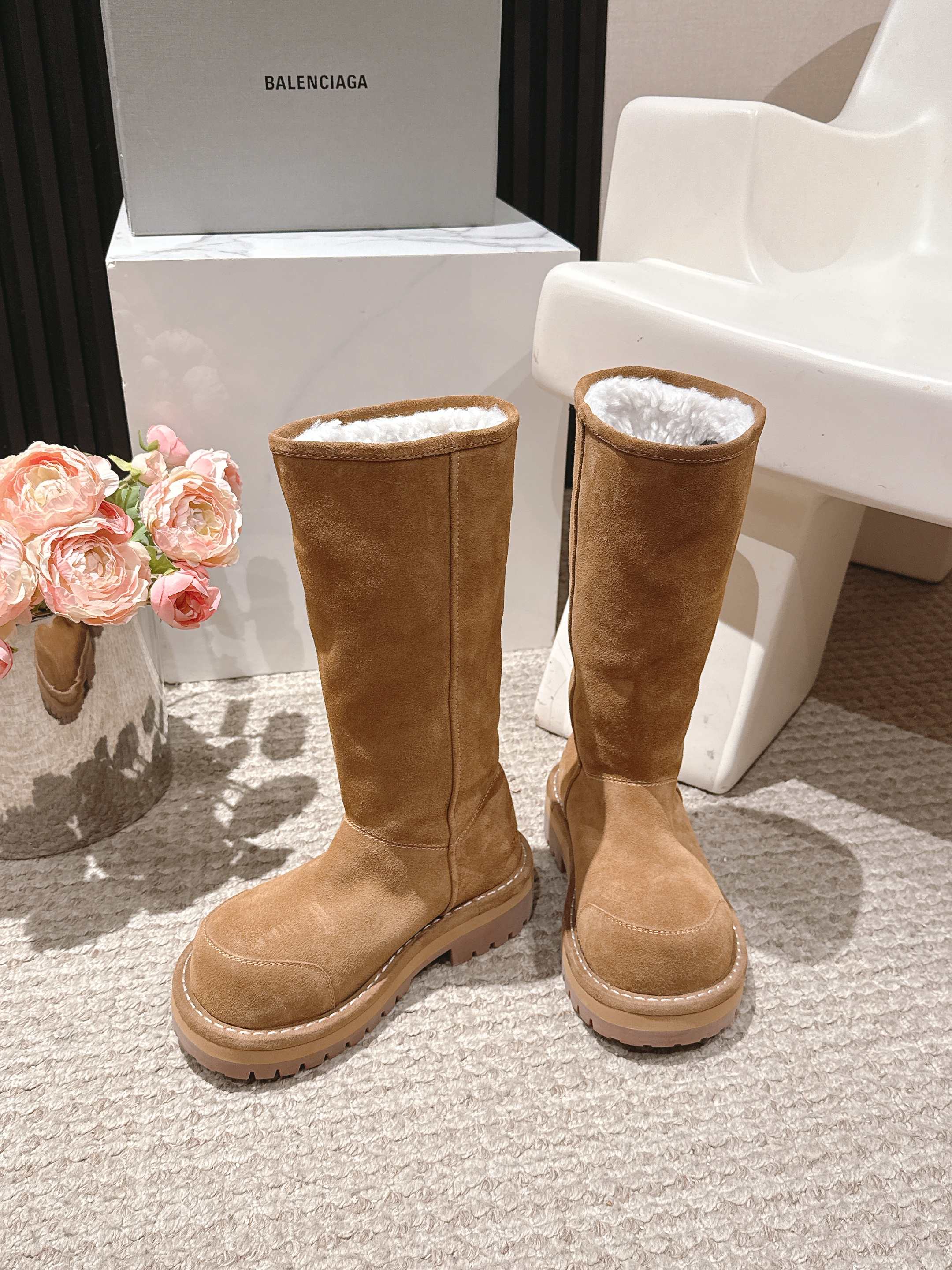 Balenciaga 25s snow boots brown suede wool 467187