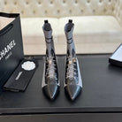 CC Ankle Boots Grey Black Chain Wool And Lambskin