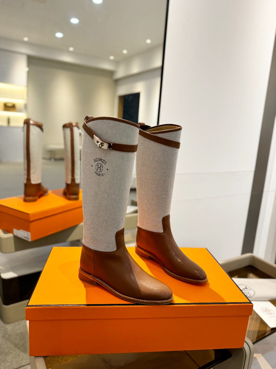 HM Jumping Boot 20mm Brown Mix Grey White Cowhide And Tech Fabric 961657