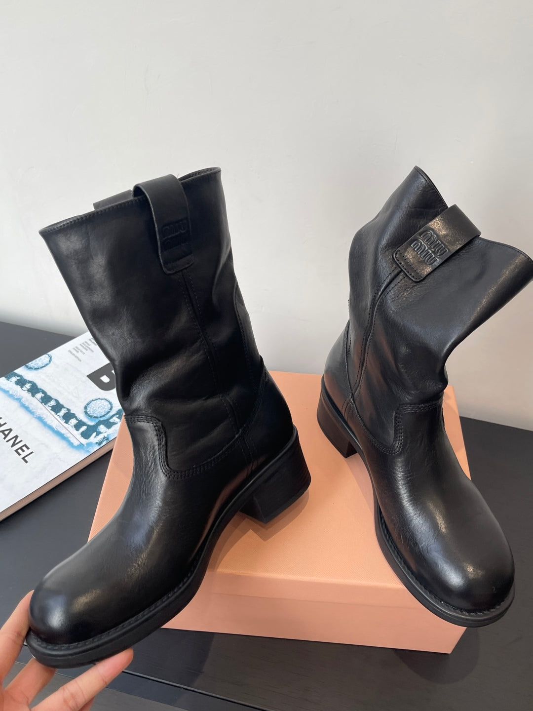 MiuMiu 26 heeled boots black cowhide 521957