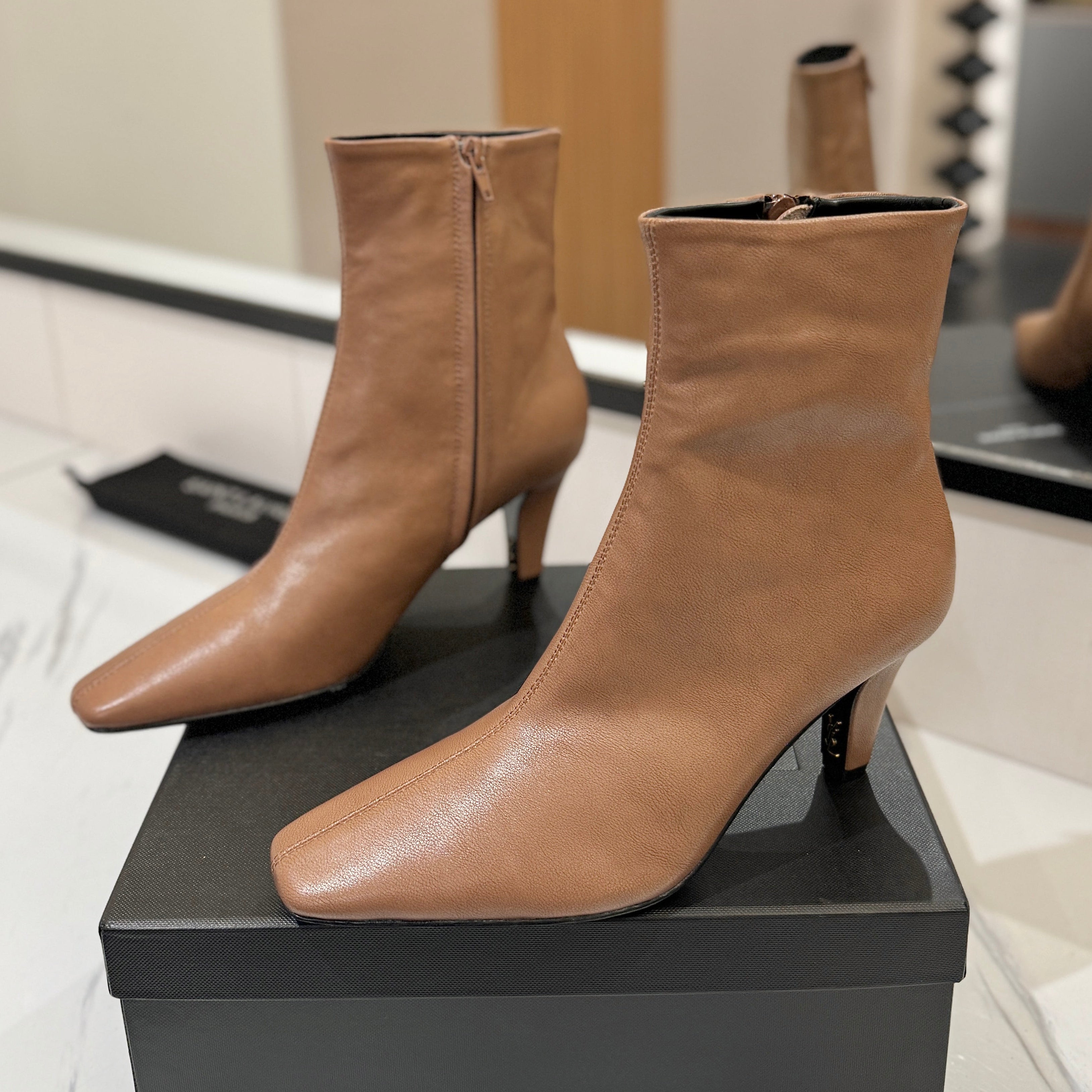 YSL 25 High-heeled Boot Light Brown Cowhide 520774