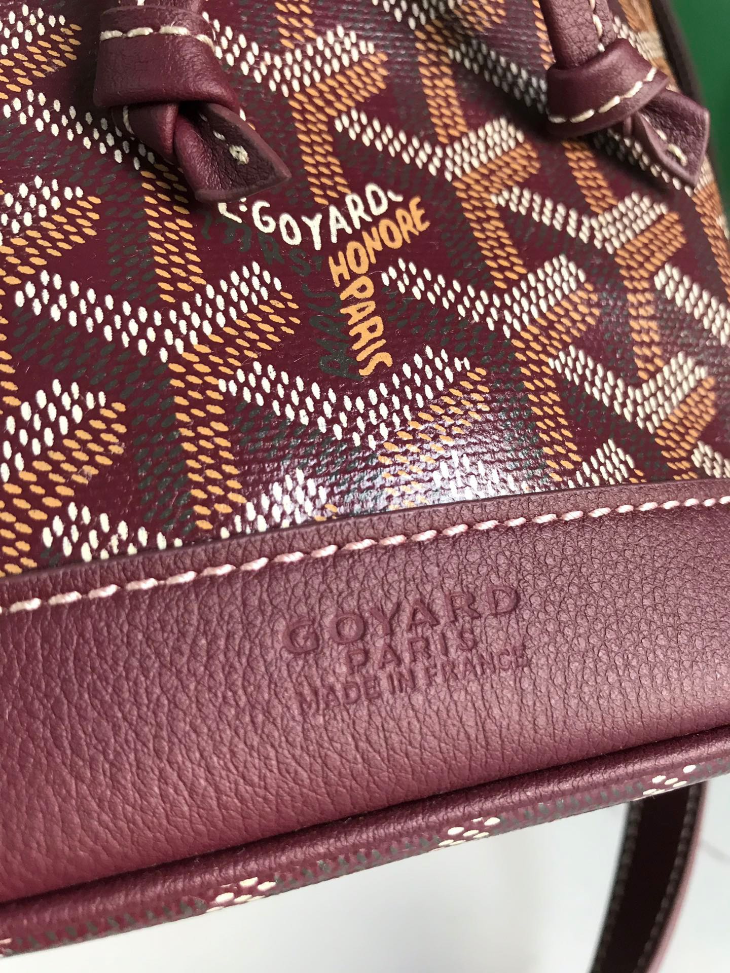 PETIT FLOT BUCKET BAG 22 IN WINE RED GOYARDINE CANVAS AND LAMBSKIN TRIM