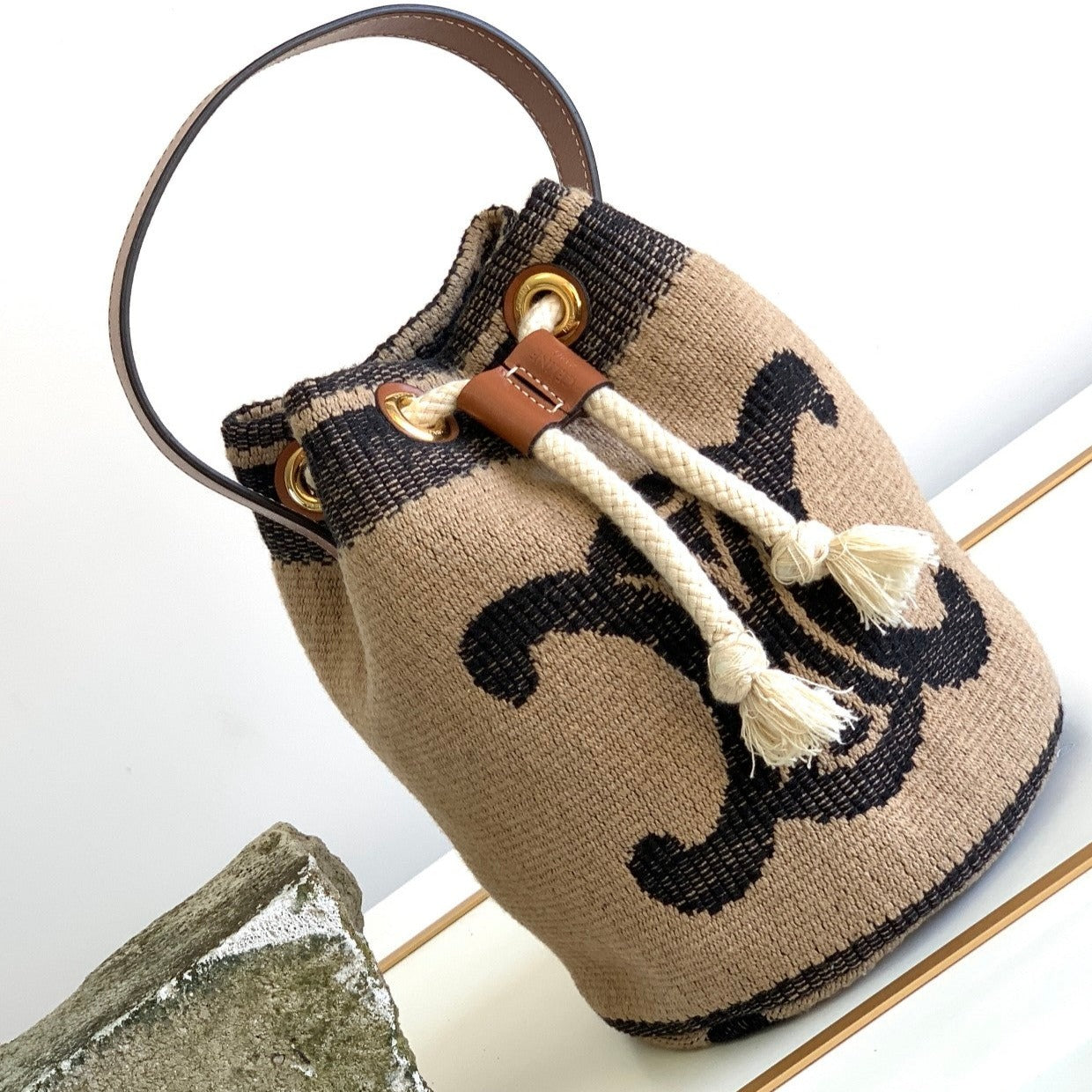 WOOL BUCKET BAG 24 BEIGE CREAM ORIGINAL CALFSKIN