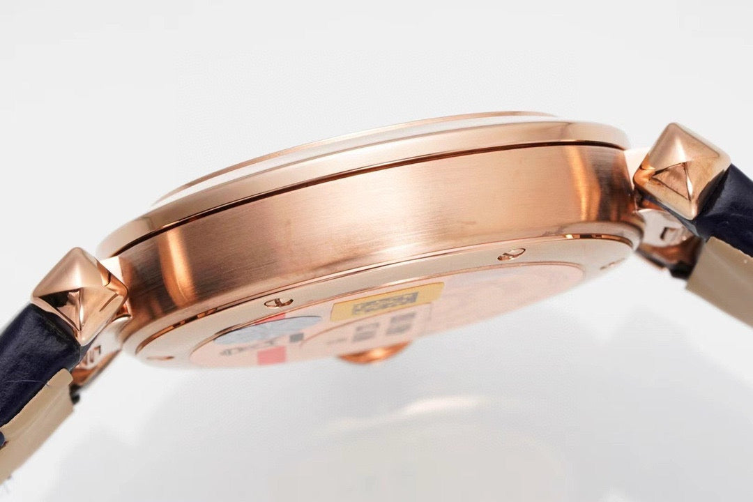 Pasha 30mm Quartz Pink Gold Case White Dial Navy Blue Strap