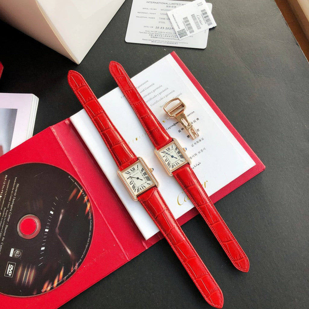 TANK SOLO PINK GOLD DIAMOND BEZEL RED CROCODILE LEATHER