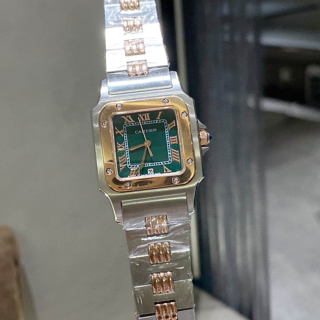 SANTOS LADY 35.1MM STEEL CASE DEEP GREEN DIAL