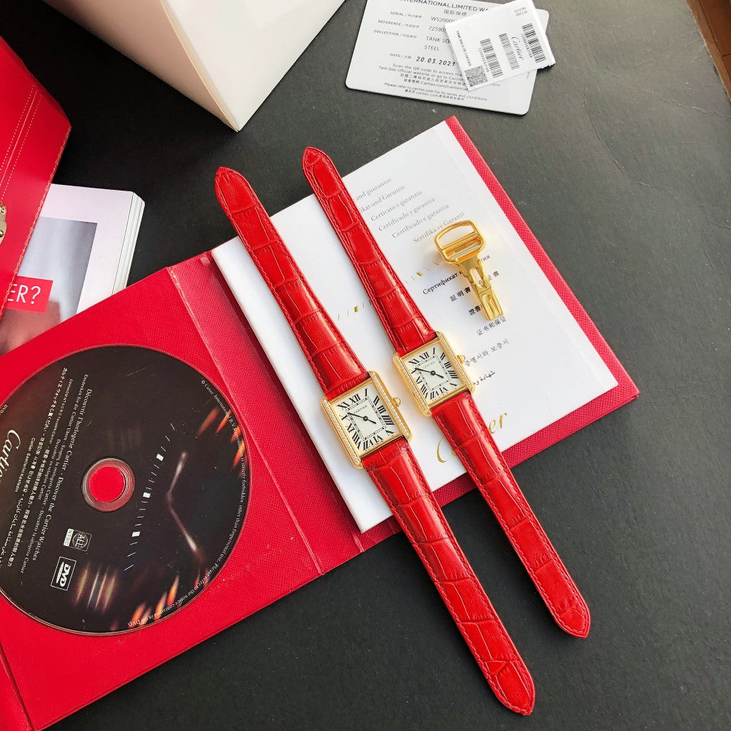 TANK SOLO GOLD DIAMOND BEZEL RED CROCODILE LEATHER
