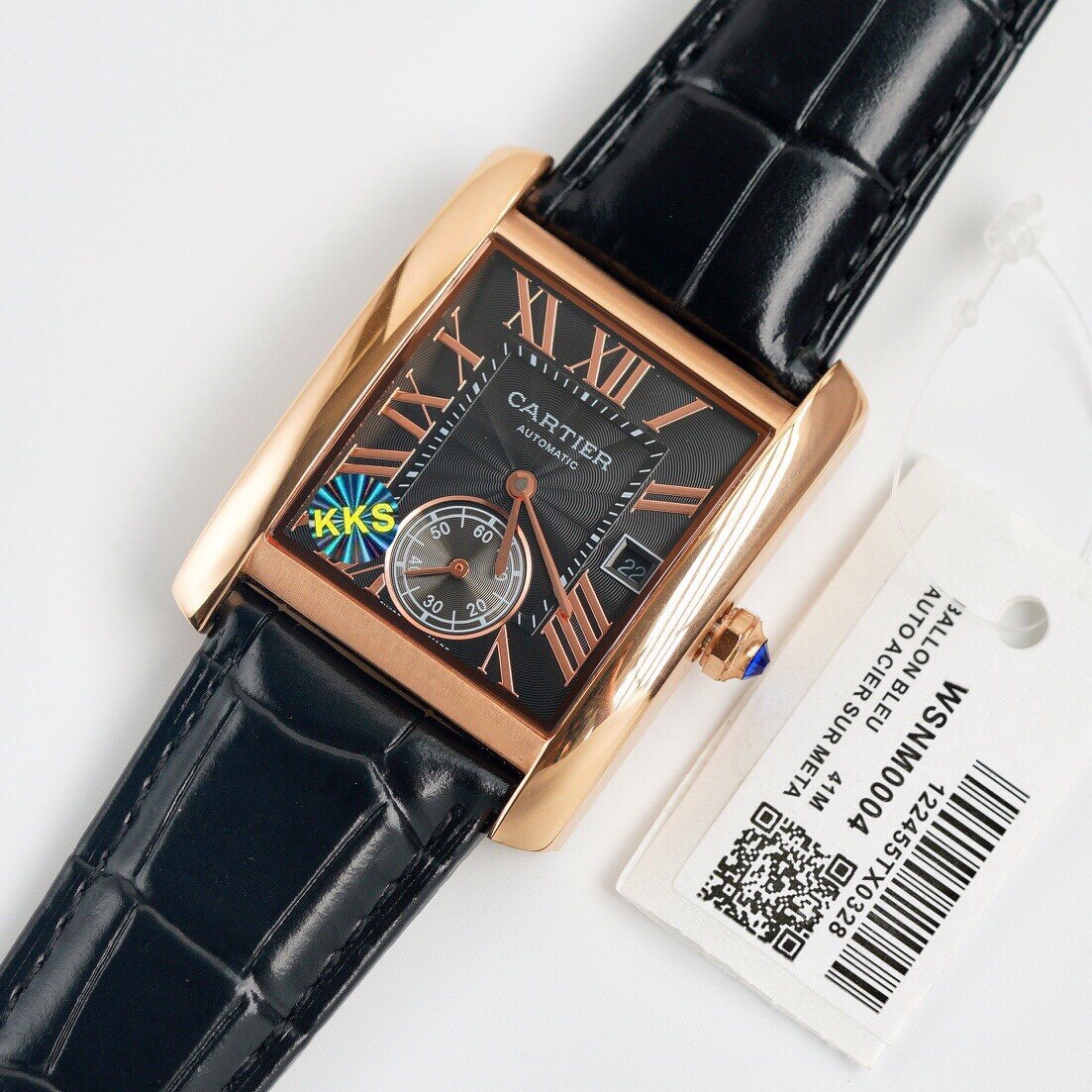 SANTOS 40MM BLACK CASE LEATHER STRAP