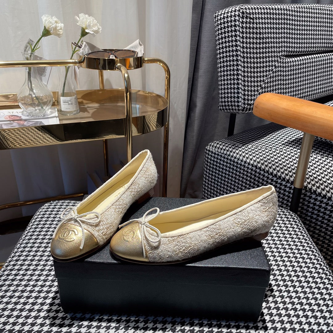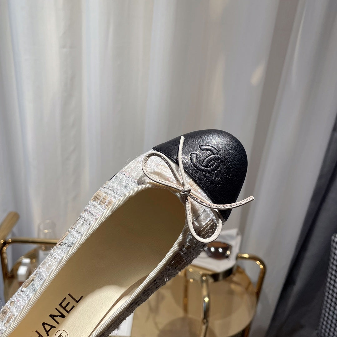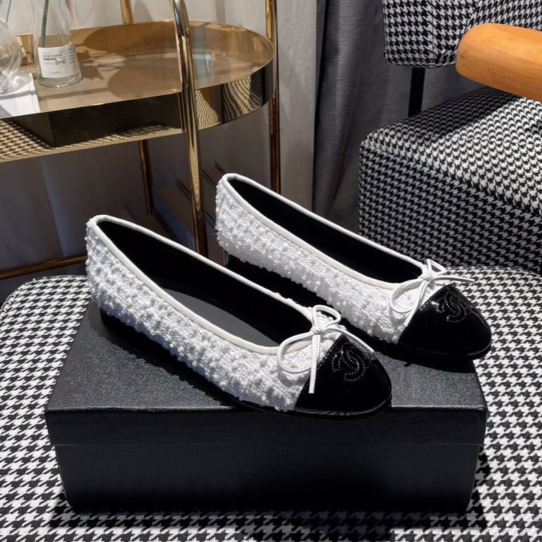 CC 25 Ballet Flat Large Logo White Quilted Calfskin