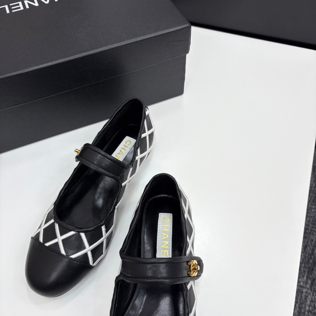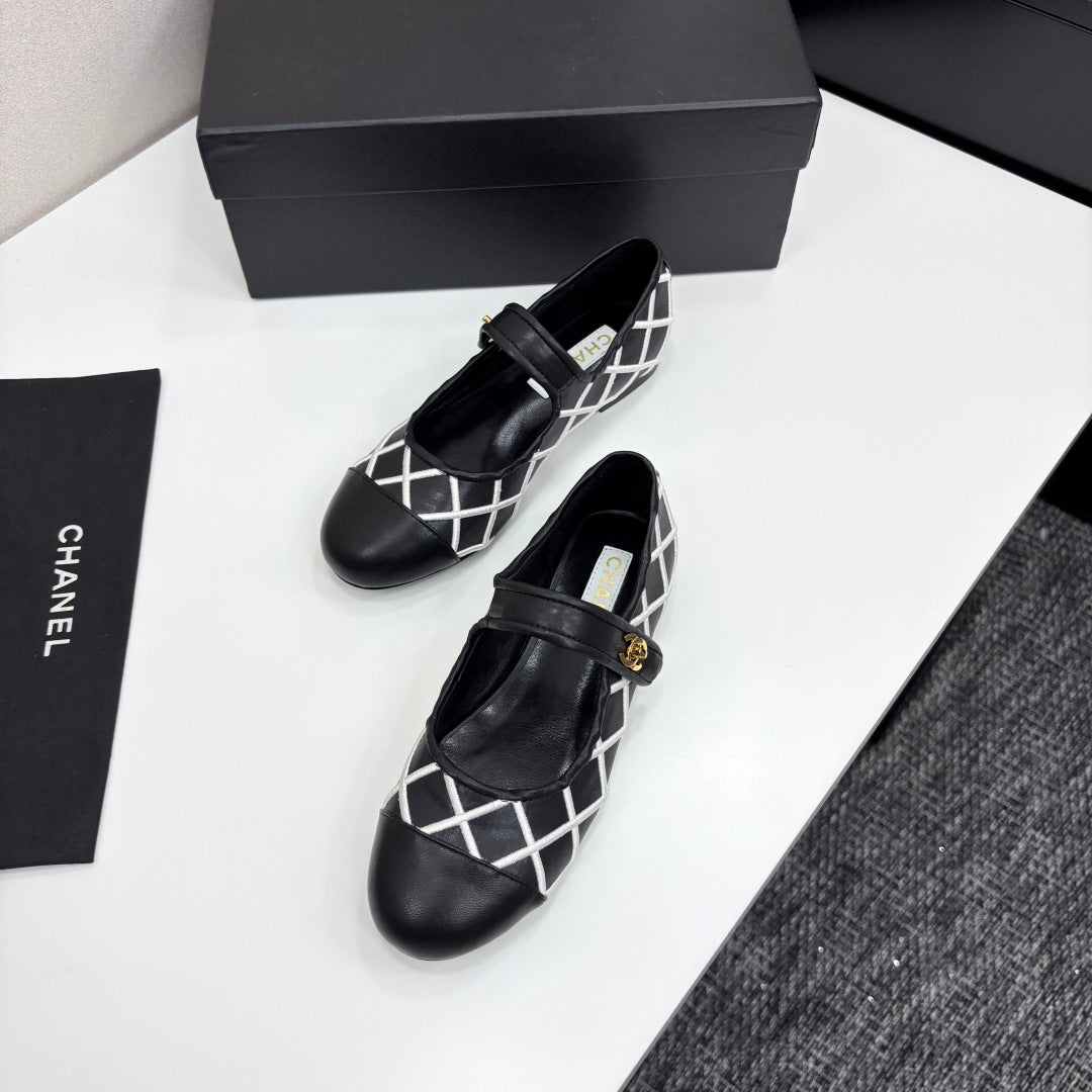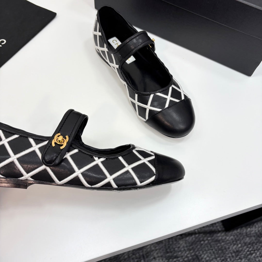 CC 25 Ballet Flat Large Logo Black Quilted Calfskin