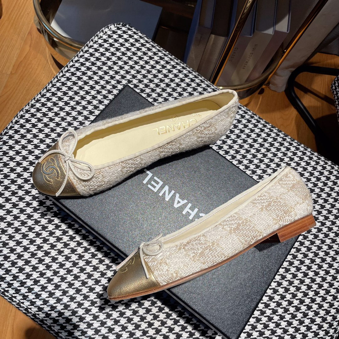 ballet flat gold white tweed gold metalic calfskin