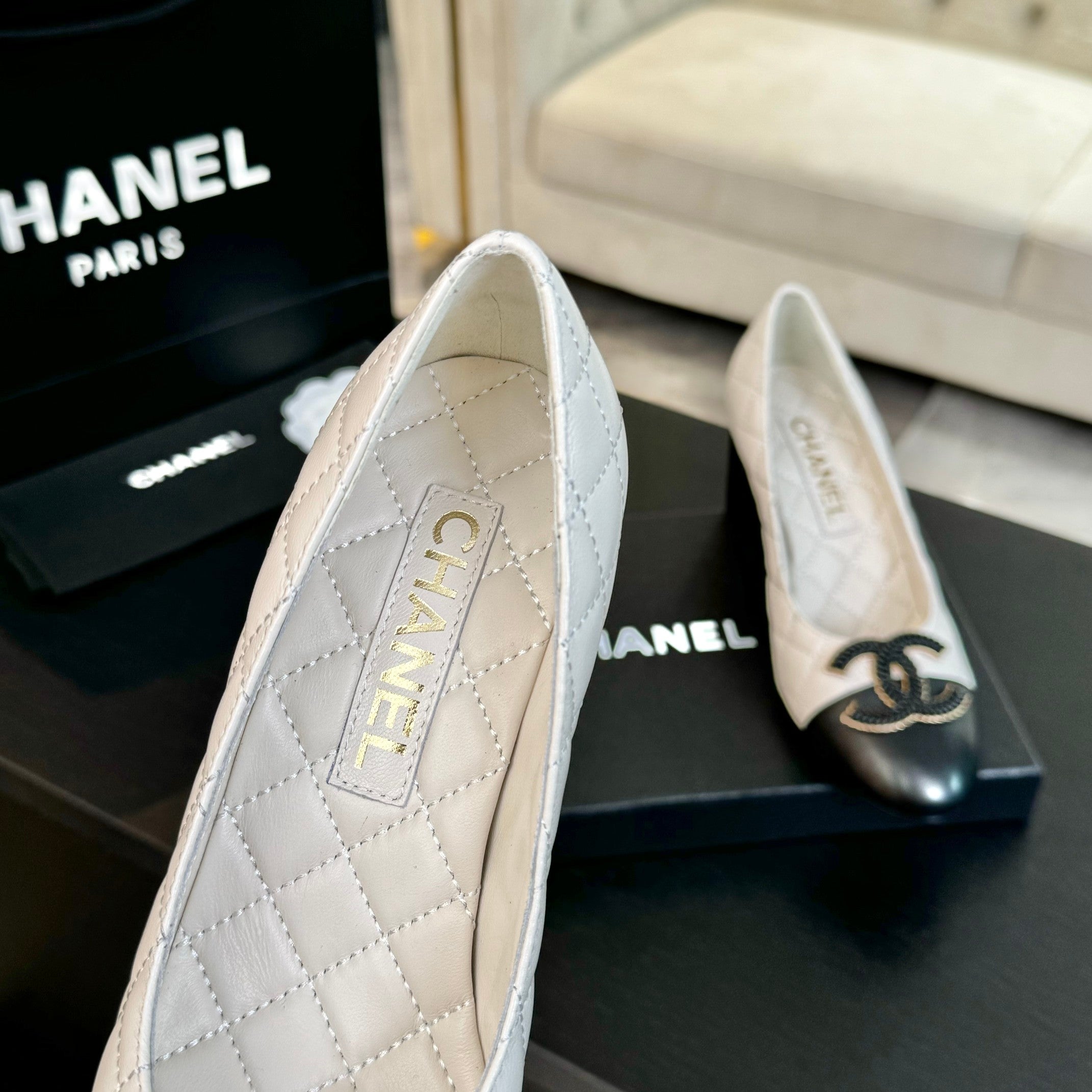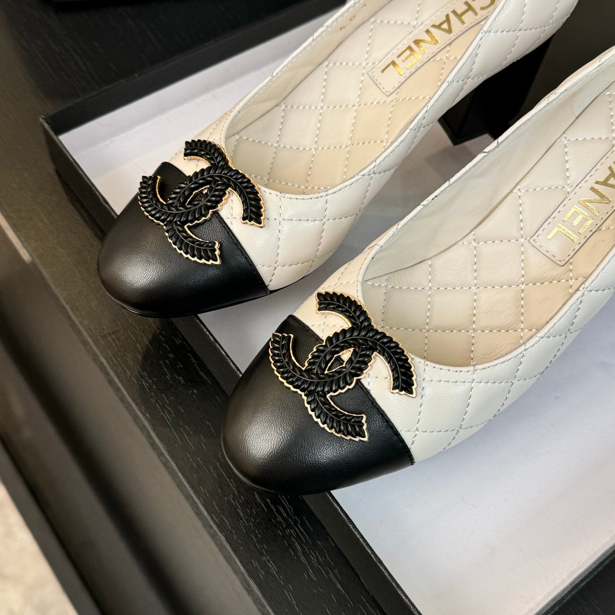 ballet flat with high heel 7cm white black quilted lambskin