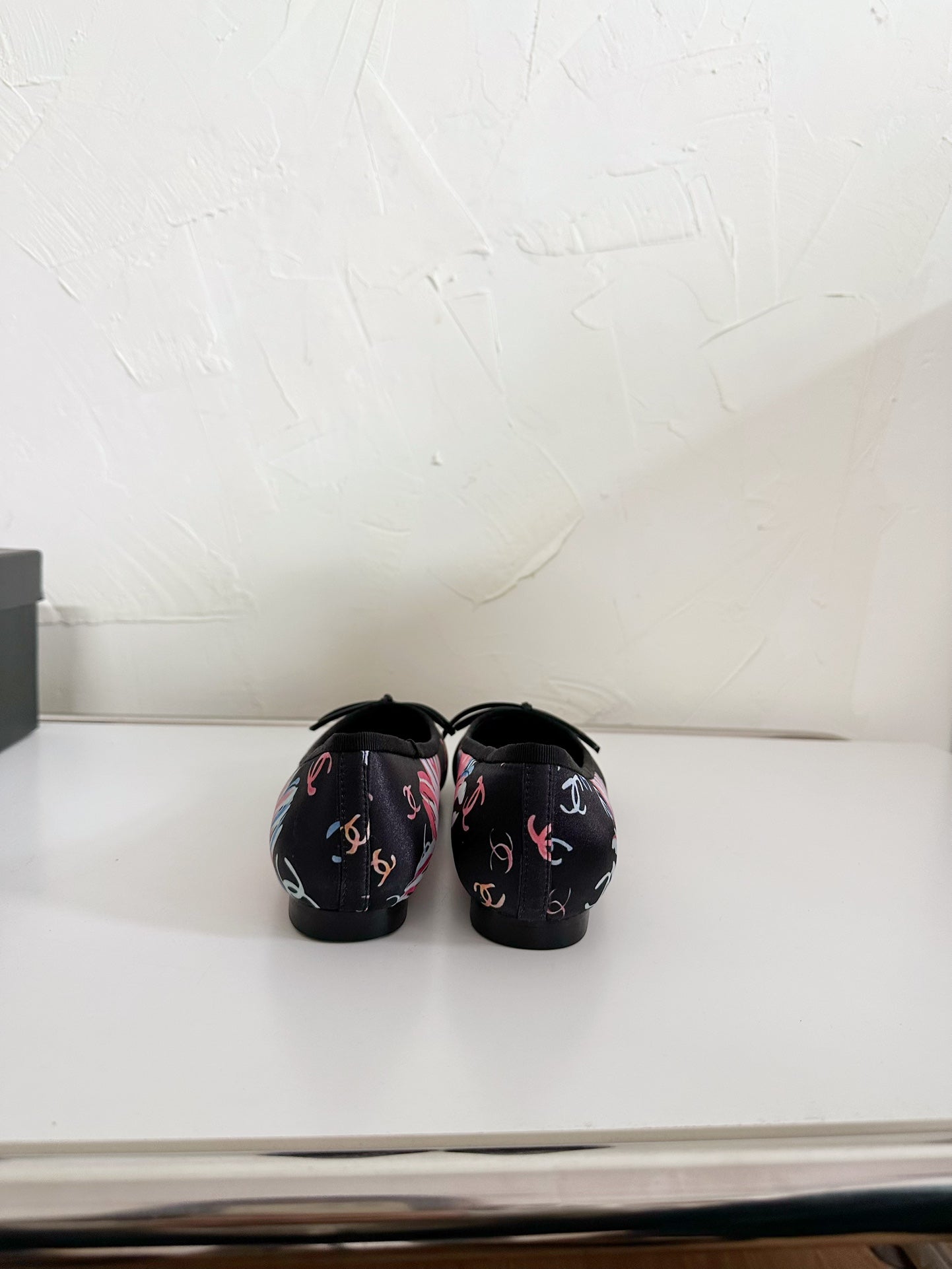 Ballet Flats White Cloth Black Patent Calfskin