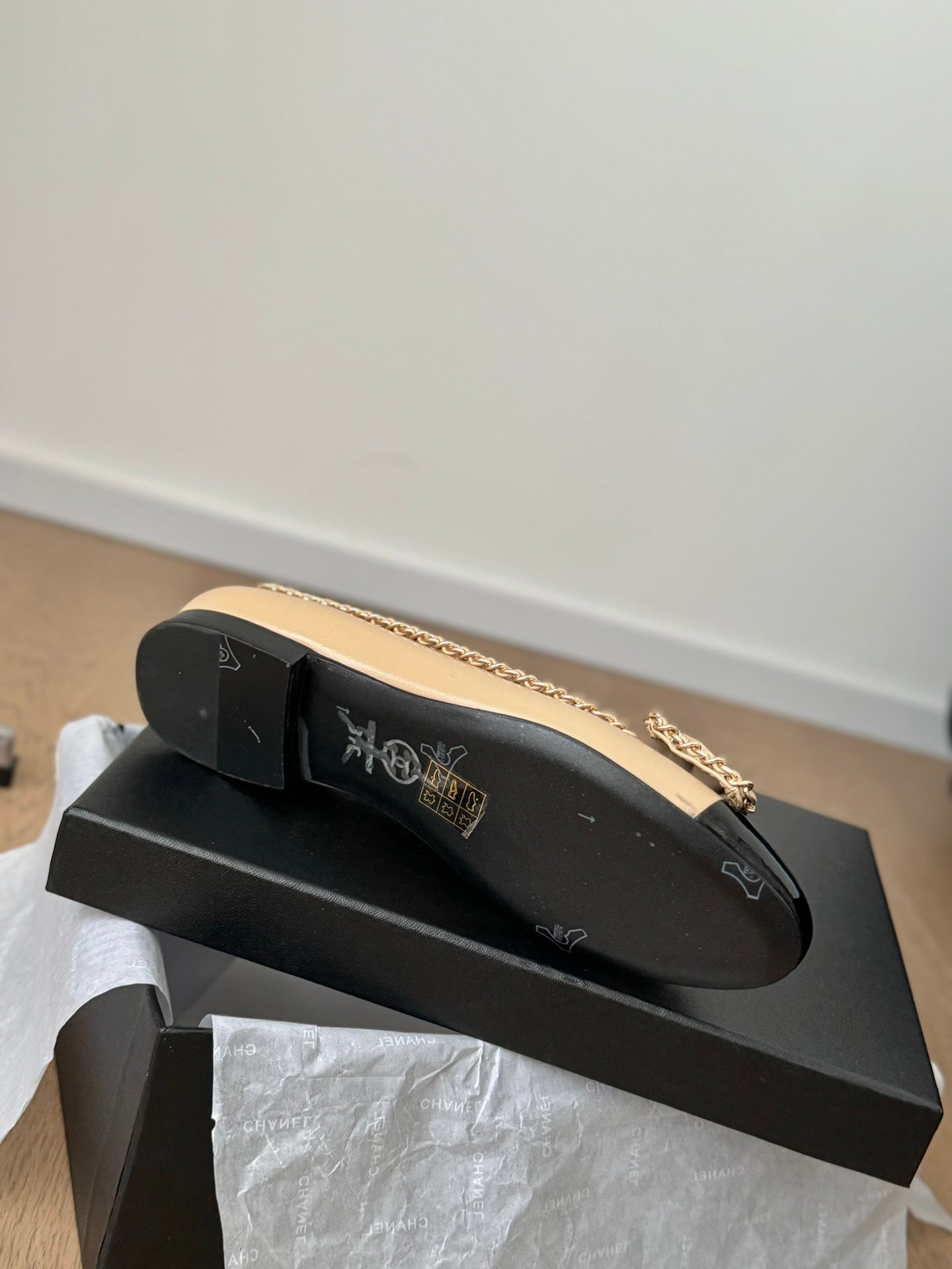 CC Ballet Flats 25mm Beige Chain Lambskin
