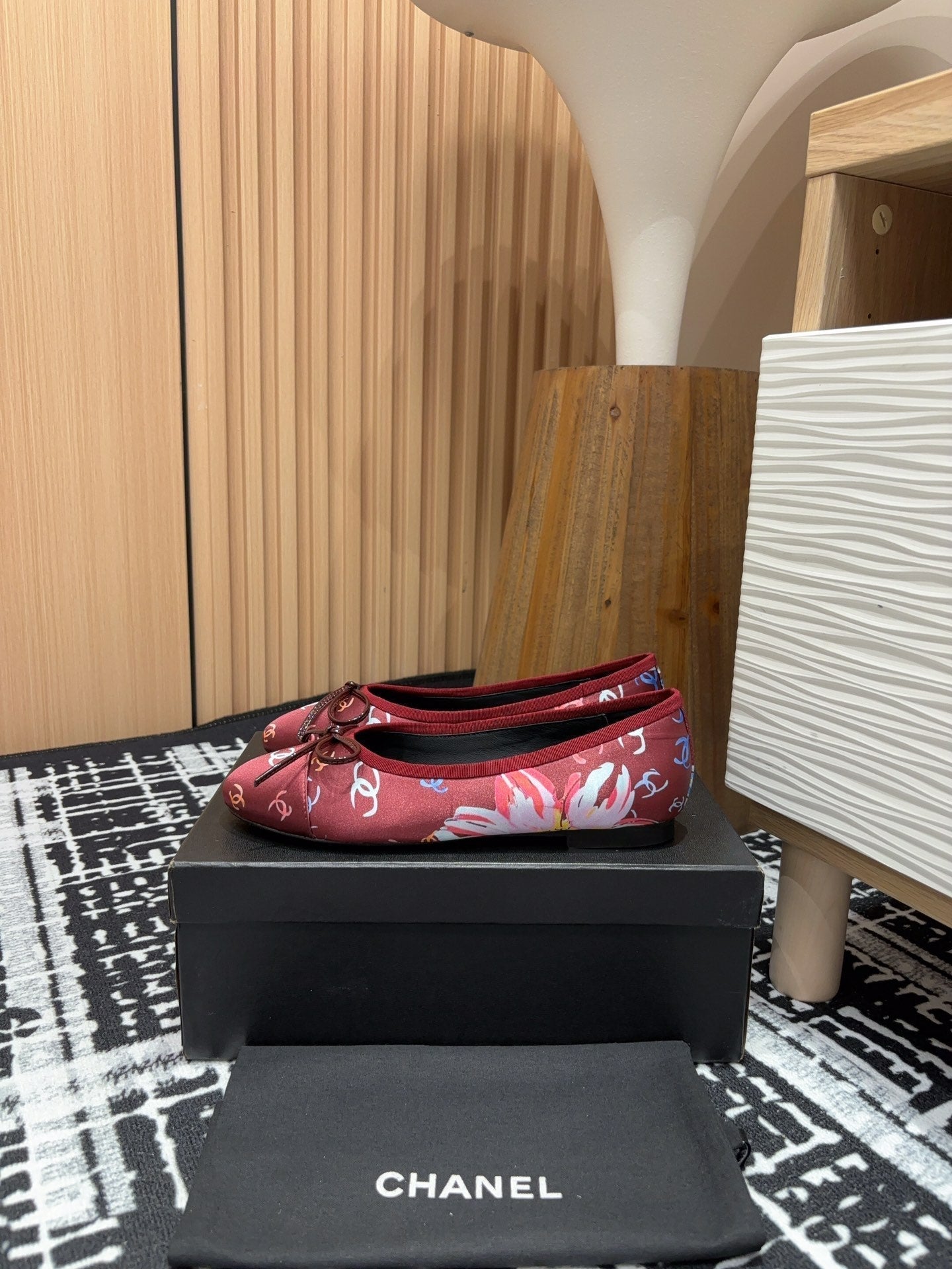 CC Ballet Flats Red Silk Flowers And Lambskin