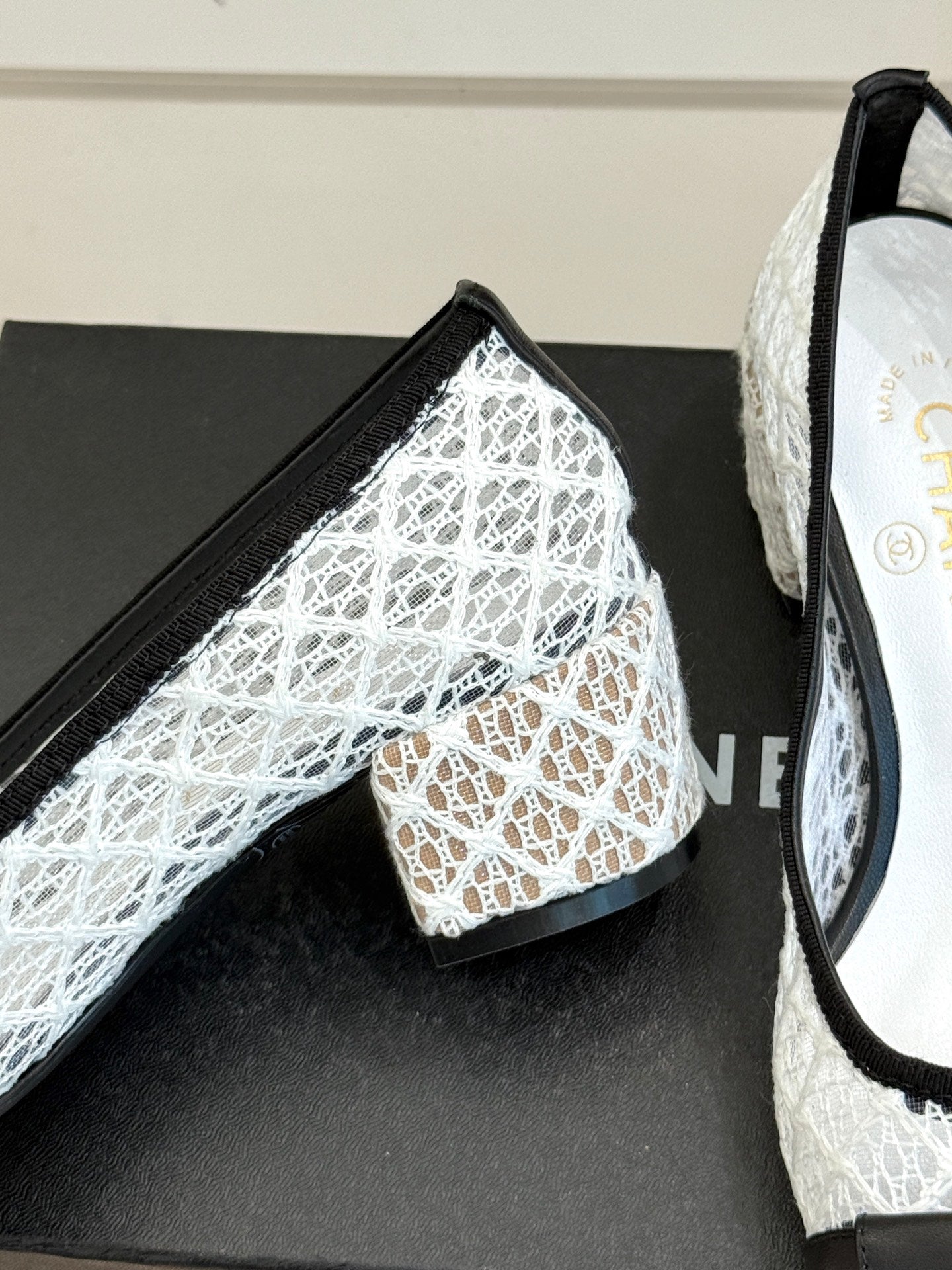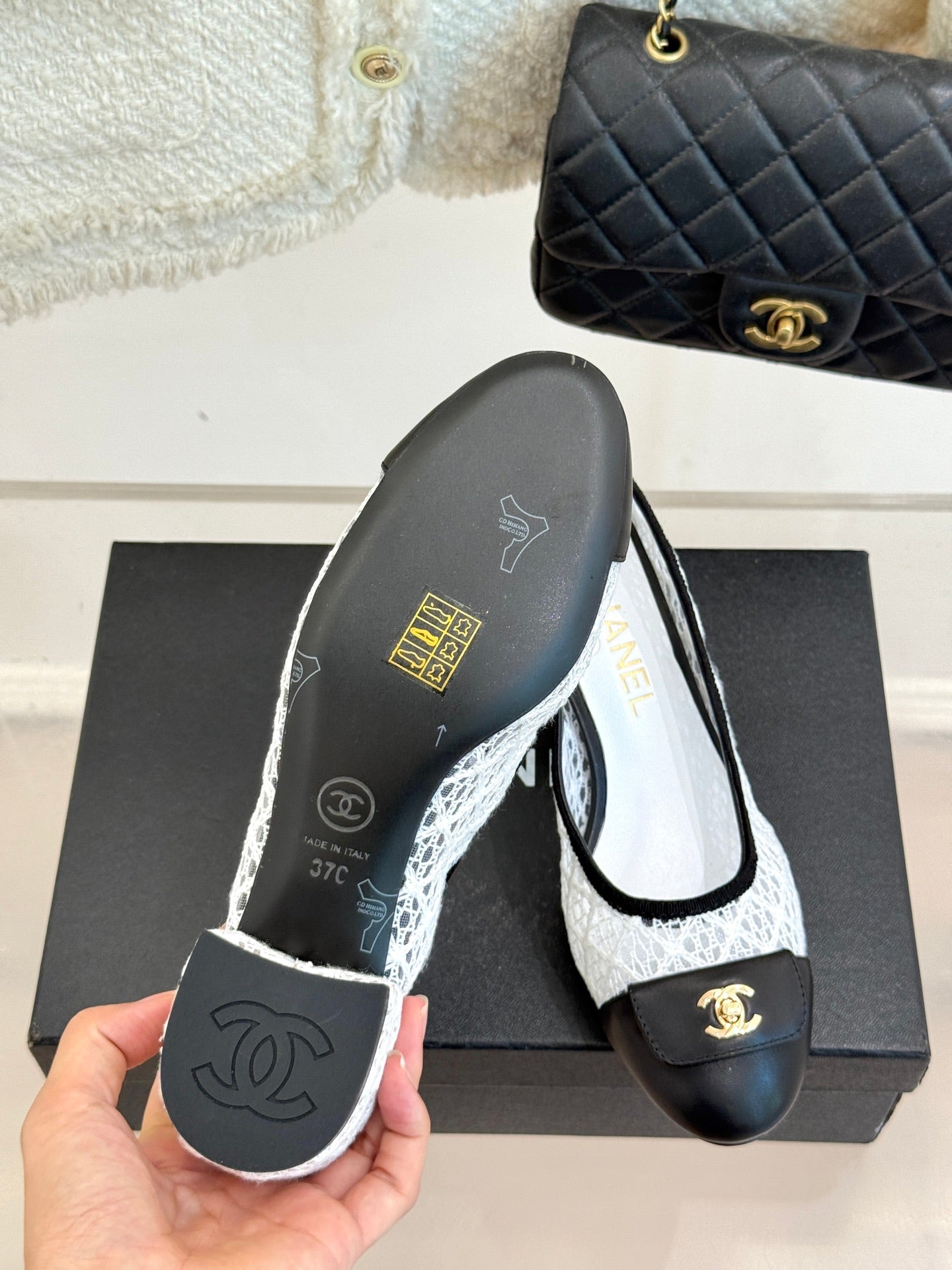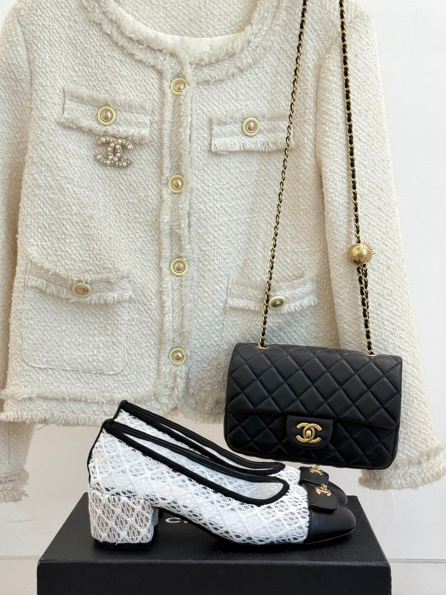 Chanel 25 Ballet Flat 50mm White Black Woven Lambskin 473053