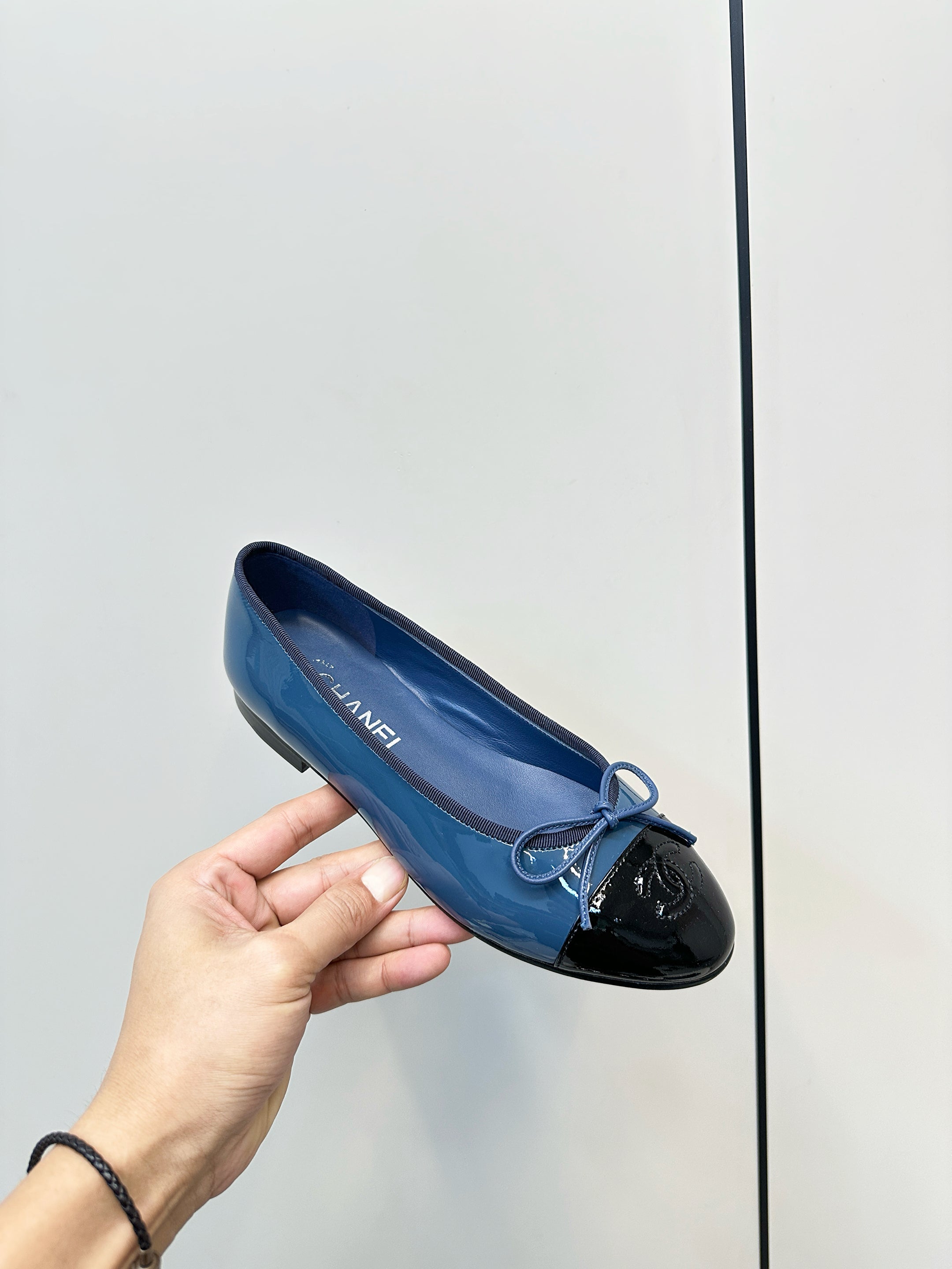 Chanel 25 Ballet Flat Blue Black Patent Leather 469254