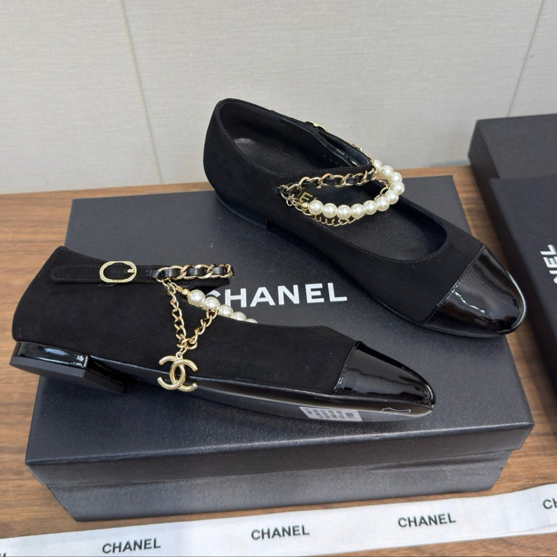 Chanel 25 Mary Jane Ankle Chain Ballet Flat black Suede Cowhide 465597
