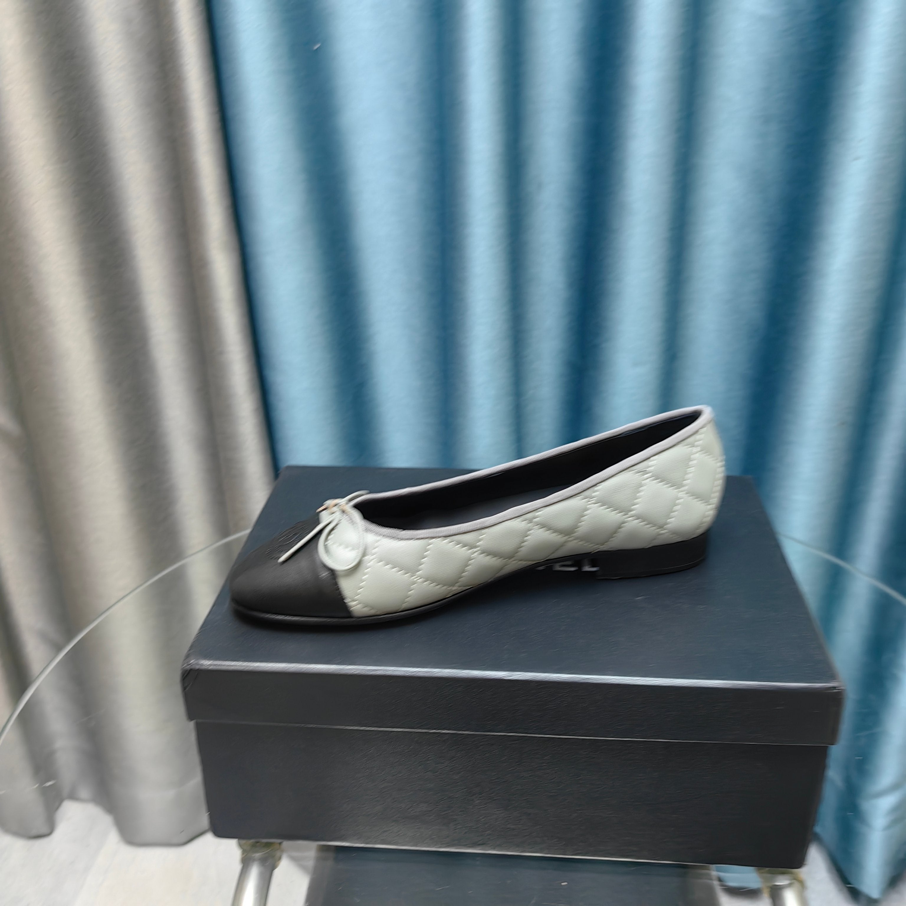 CC 25P Ballet Flat Grey Black Calfskin