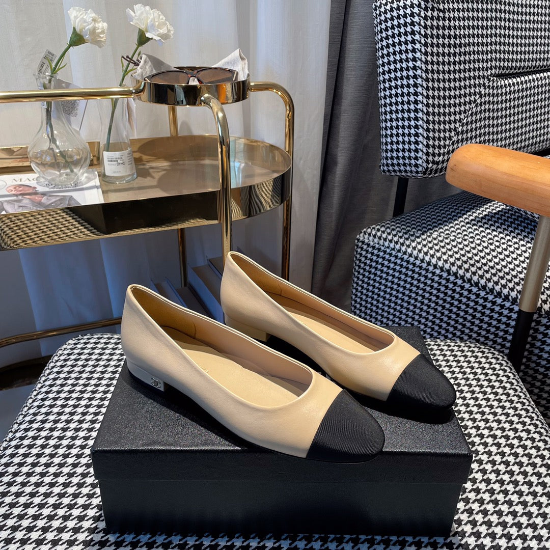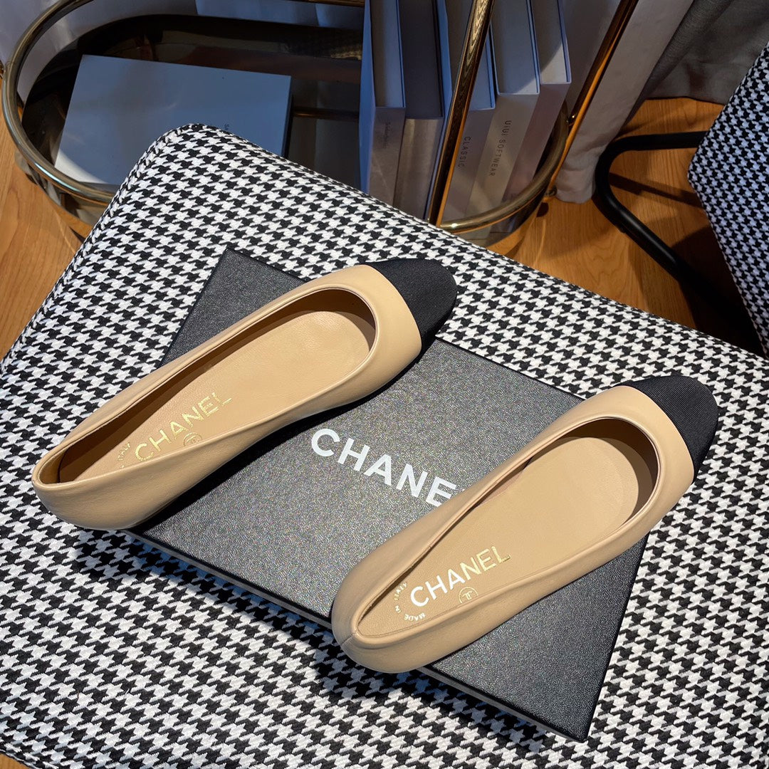 CC Ballet Flats 10mm Beige Black Quilted Lambskin