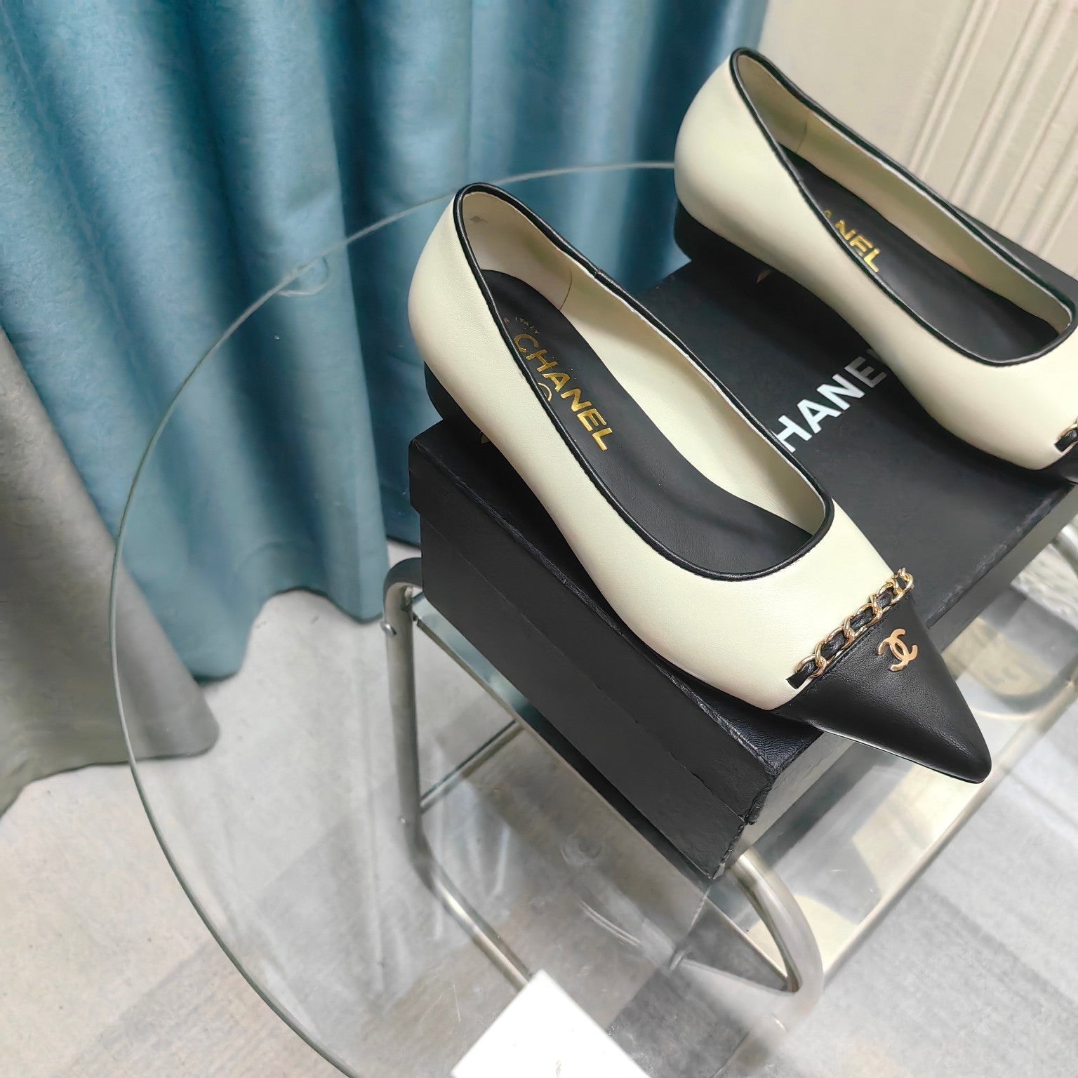 CC Ballet Flats 10mm White Black Quilted Lambskin