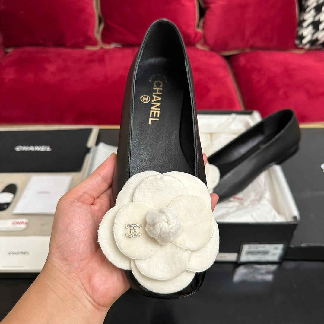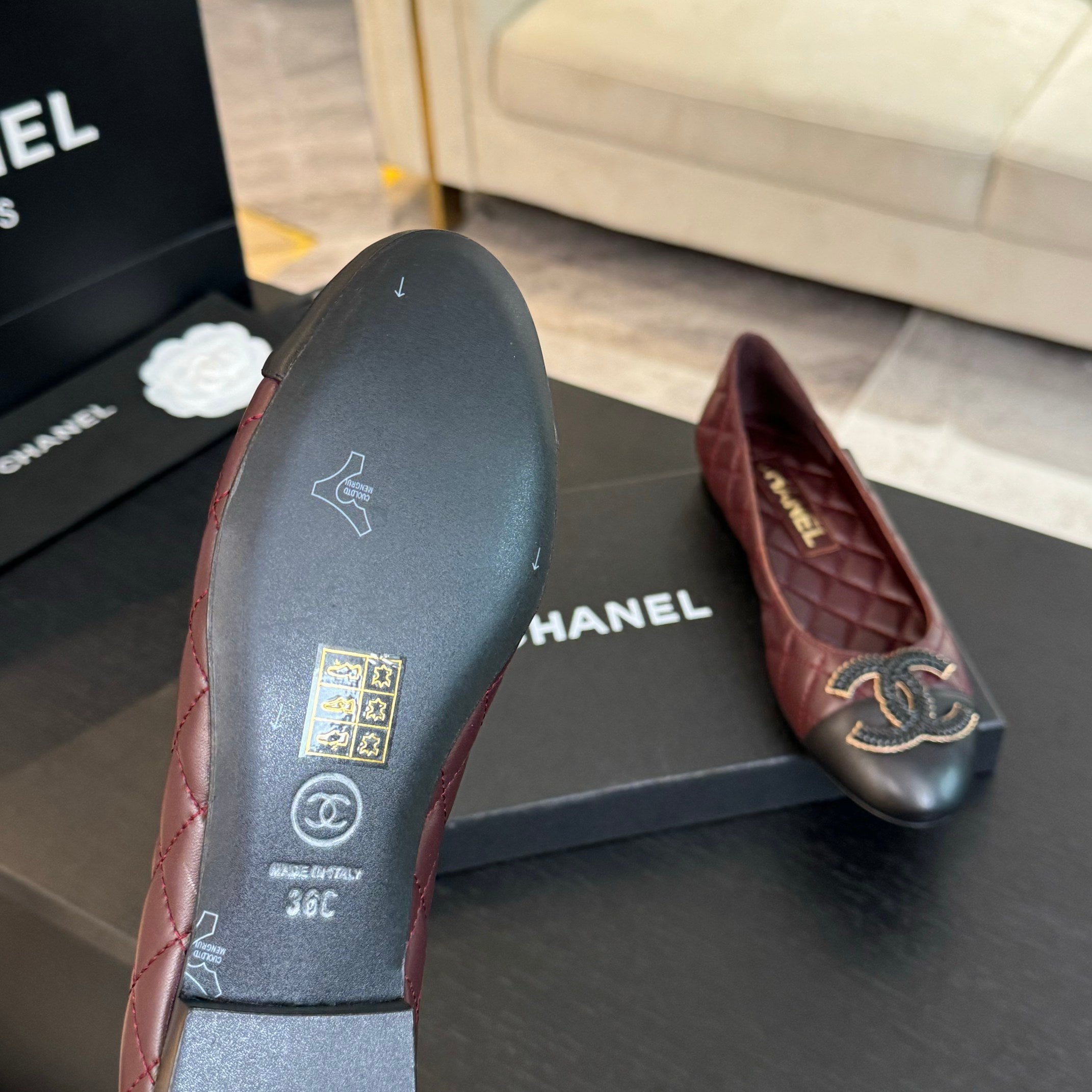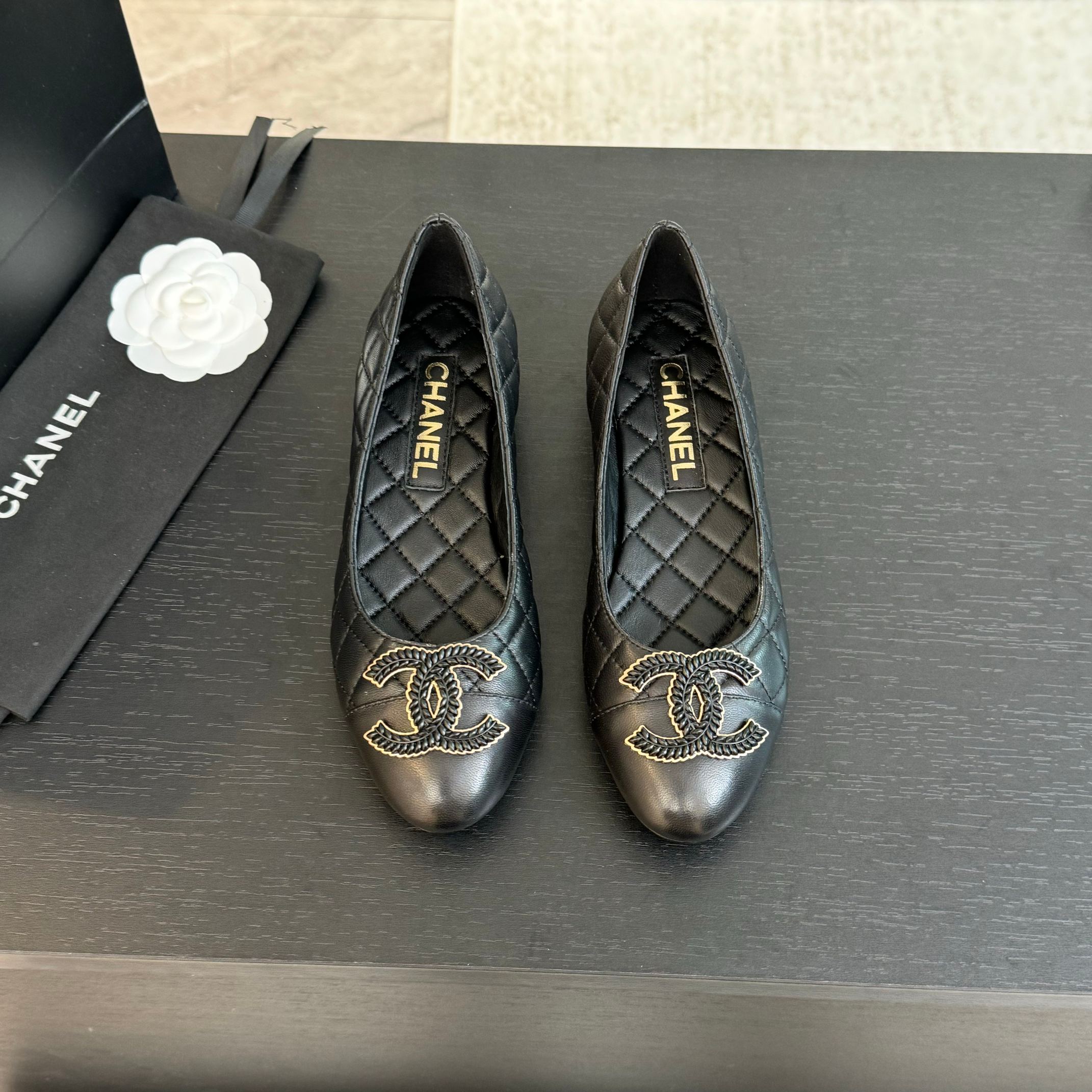 CC BALLET FLATS IN BLACK LAMBSKIN WITH GOLD HARDWARE