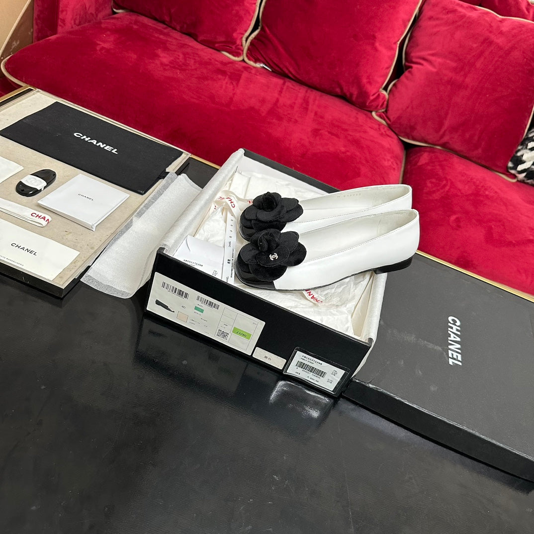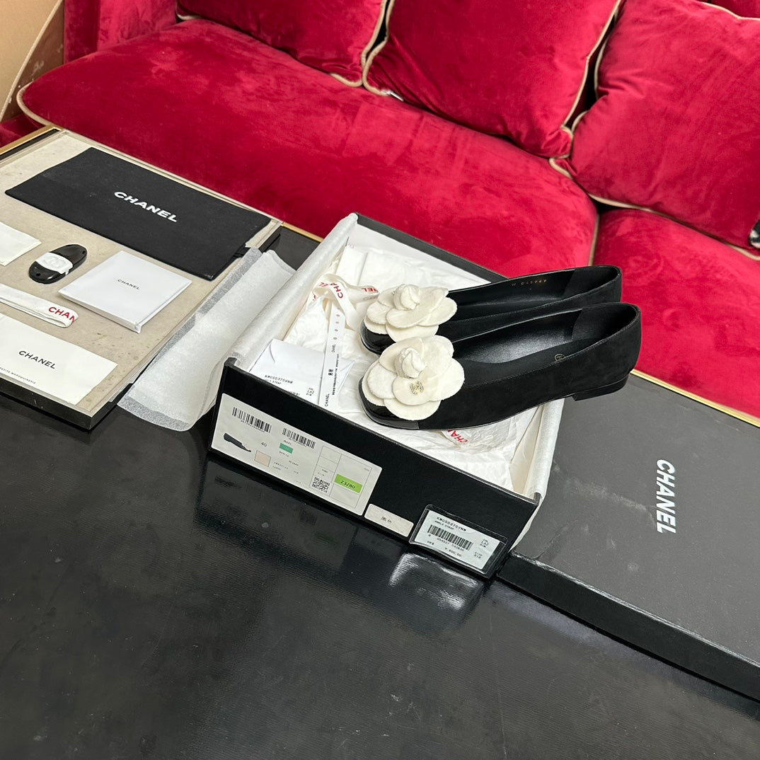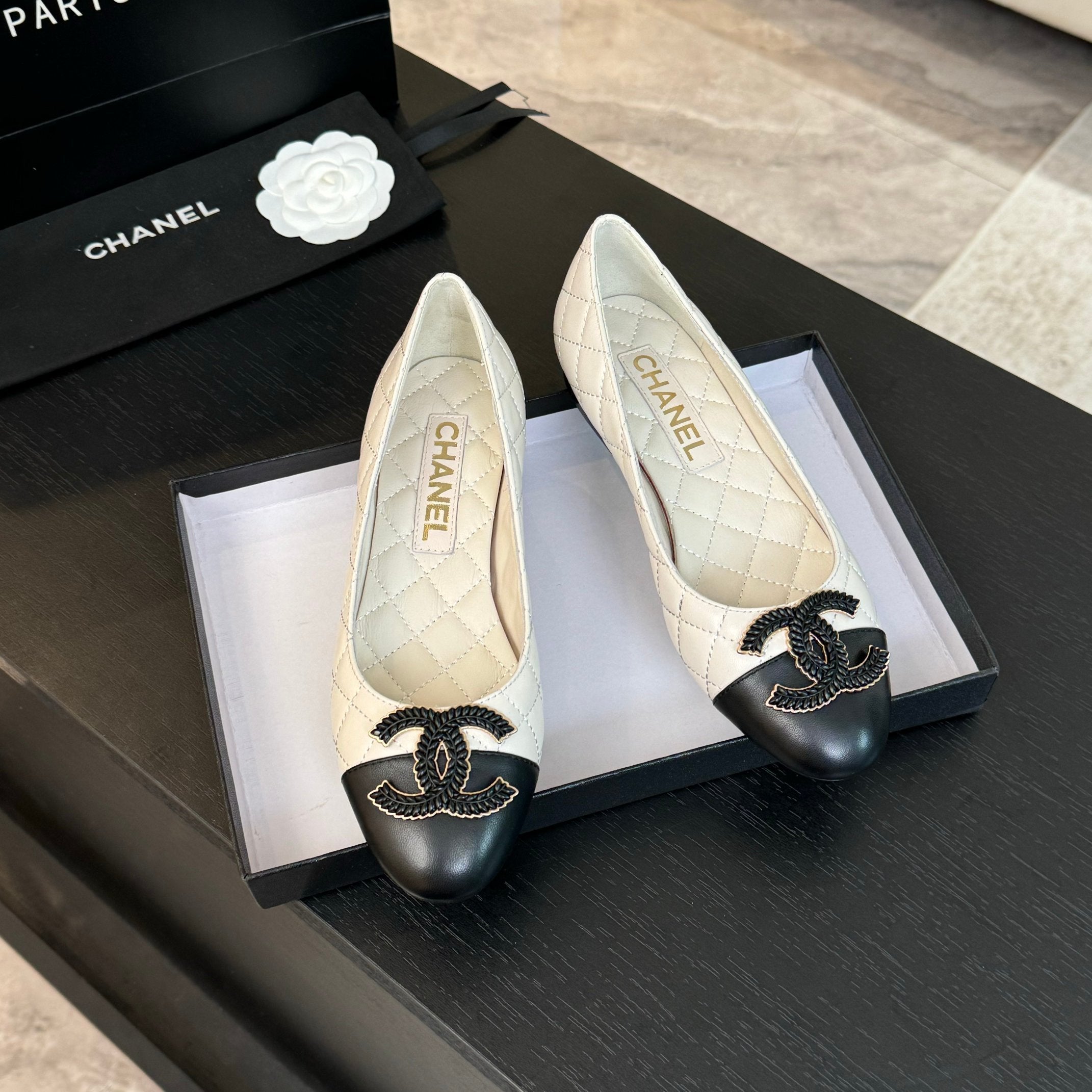 CC BALLET FLATS IN BLACK LAMBSKIN WITH GOLD HARDWARE