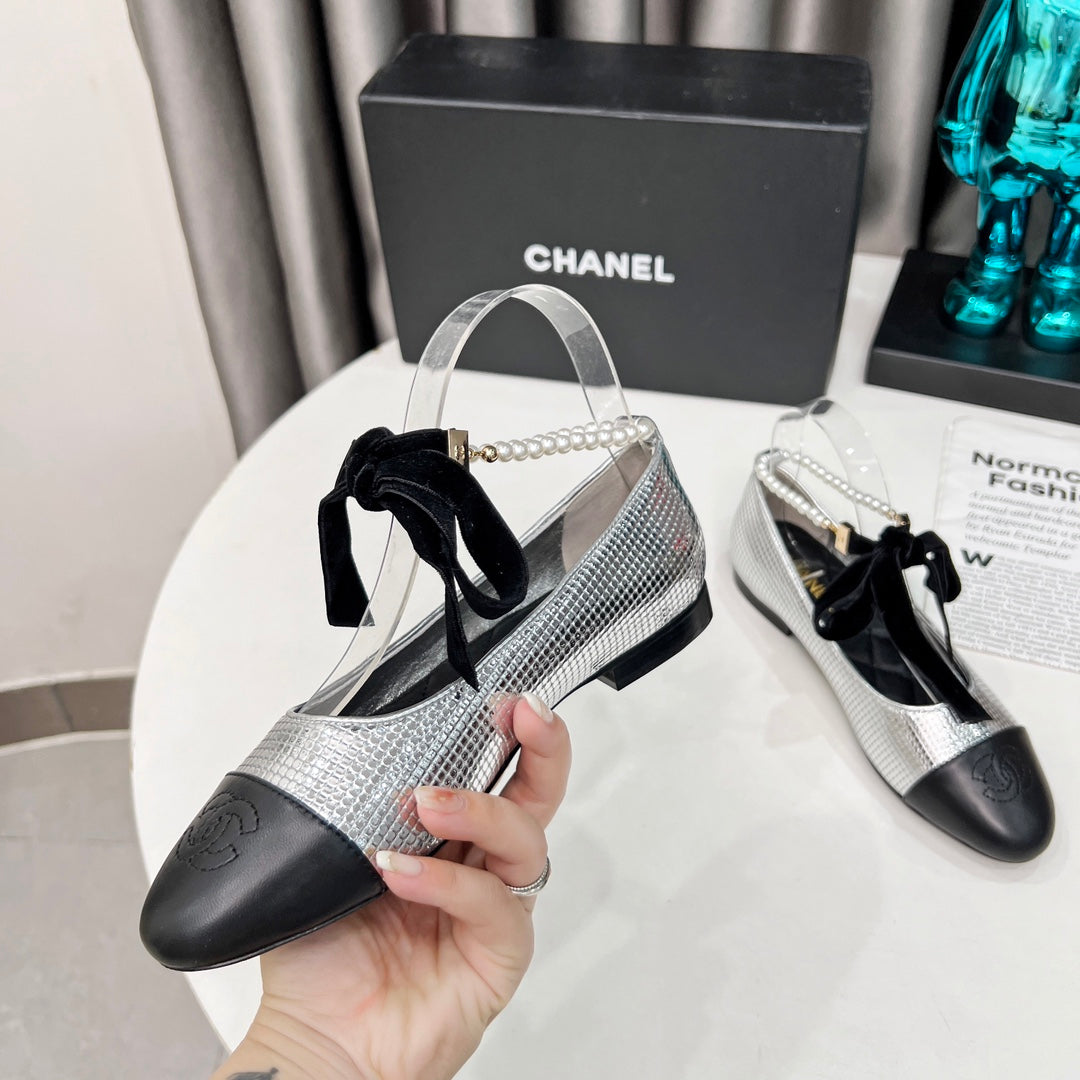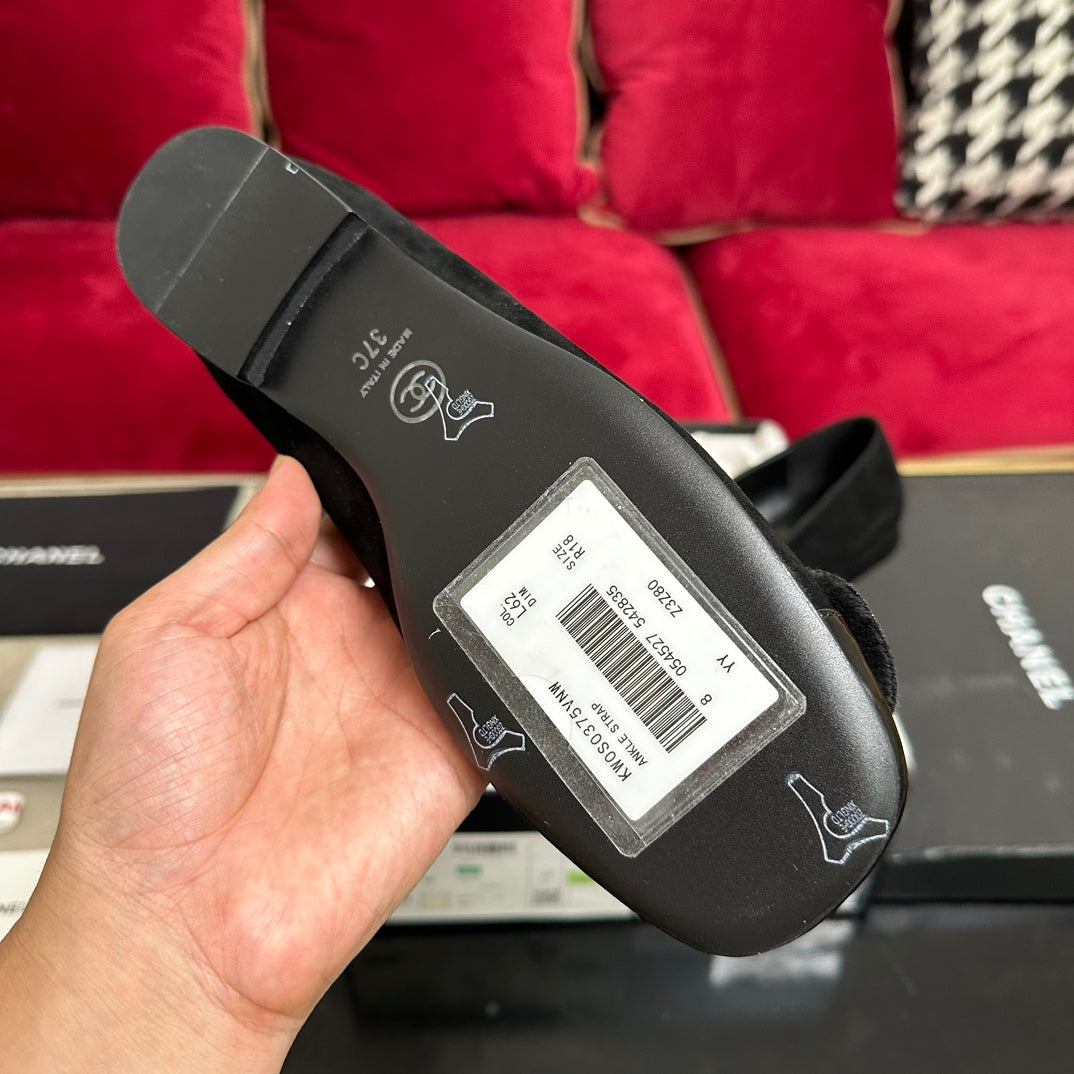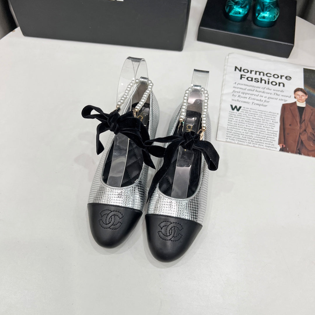 CC Mary Jane Black Studded With Pearls Lambskin And Cowhide