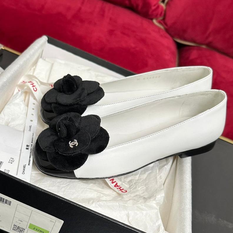 CC Mary Jane White Black Studded With Pearls Lambskin And Cowhide