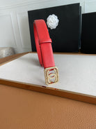 CC BELT 30MM BUCKLE GOLD DIAMOND LEATHER RED