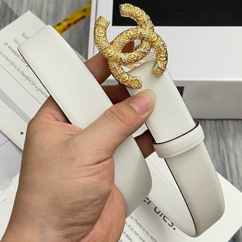 CC BELT 30MM BUCKLE GOLD DIAMOND LEATHER WHITE