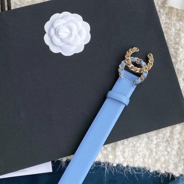 CC WOMEN'S BELT 3.0CM BUCKLE MULTICOLOR LEATHER BLUE