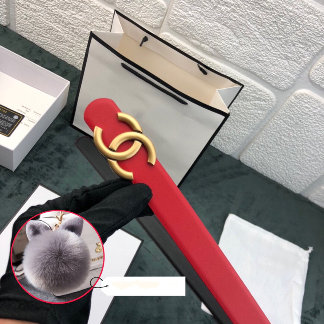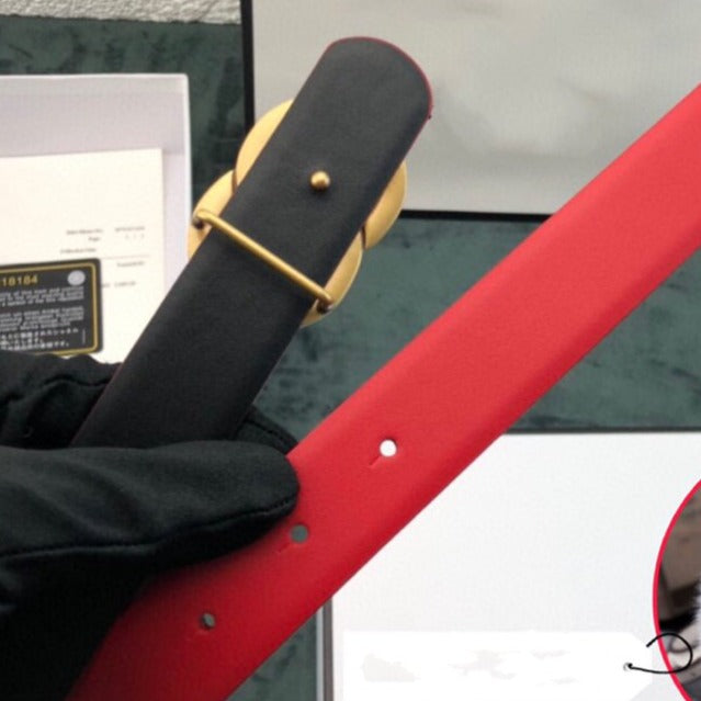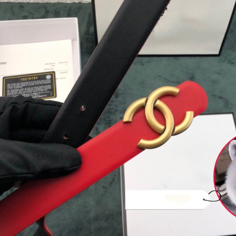 CC WOMEN'S BELT 3.0CM LEATHER RED BUCKLE GOLD
