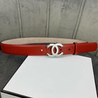 CC WOMEN'S BELT 3.0CM LEATHER RED BUCKLE SILVER